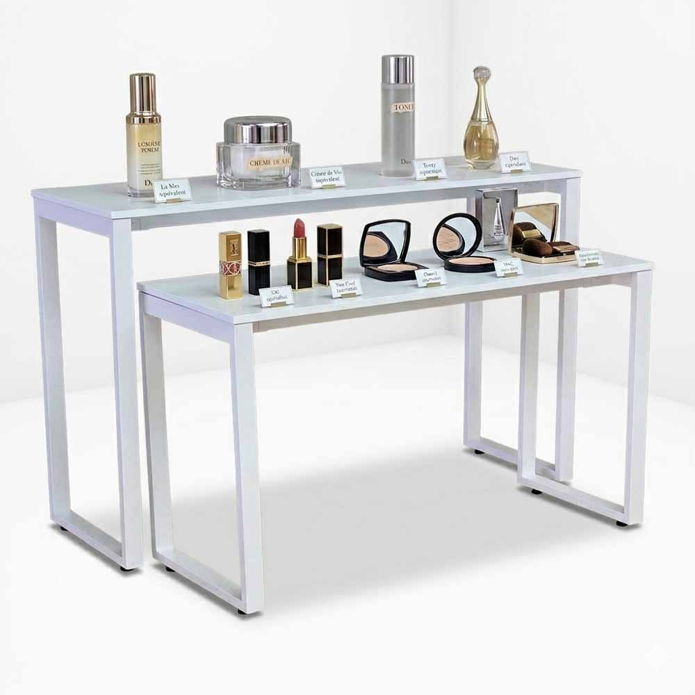 Bộ bàn trưng bày 150x50x95cm gỗ cao su khung chân sắt BTB001