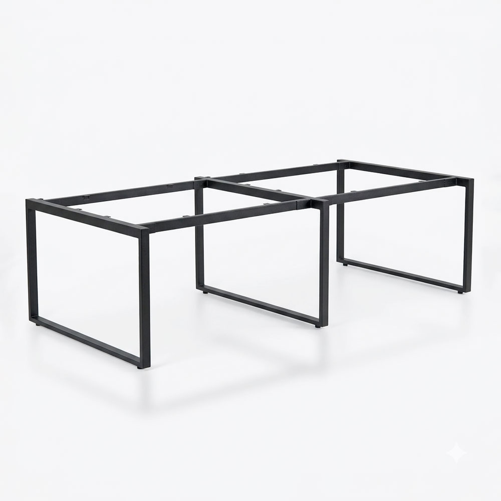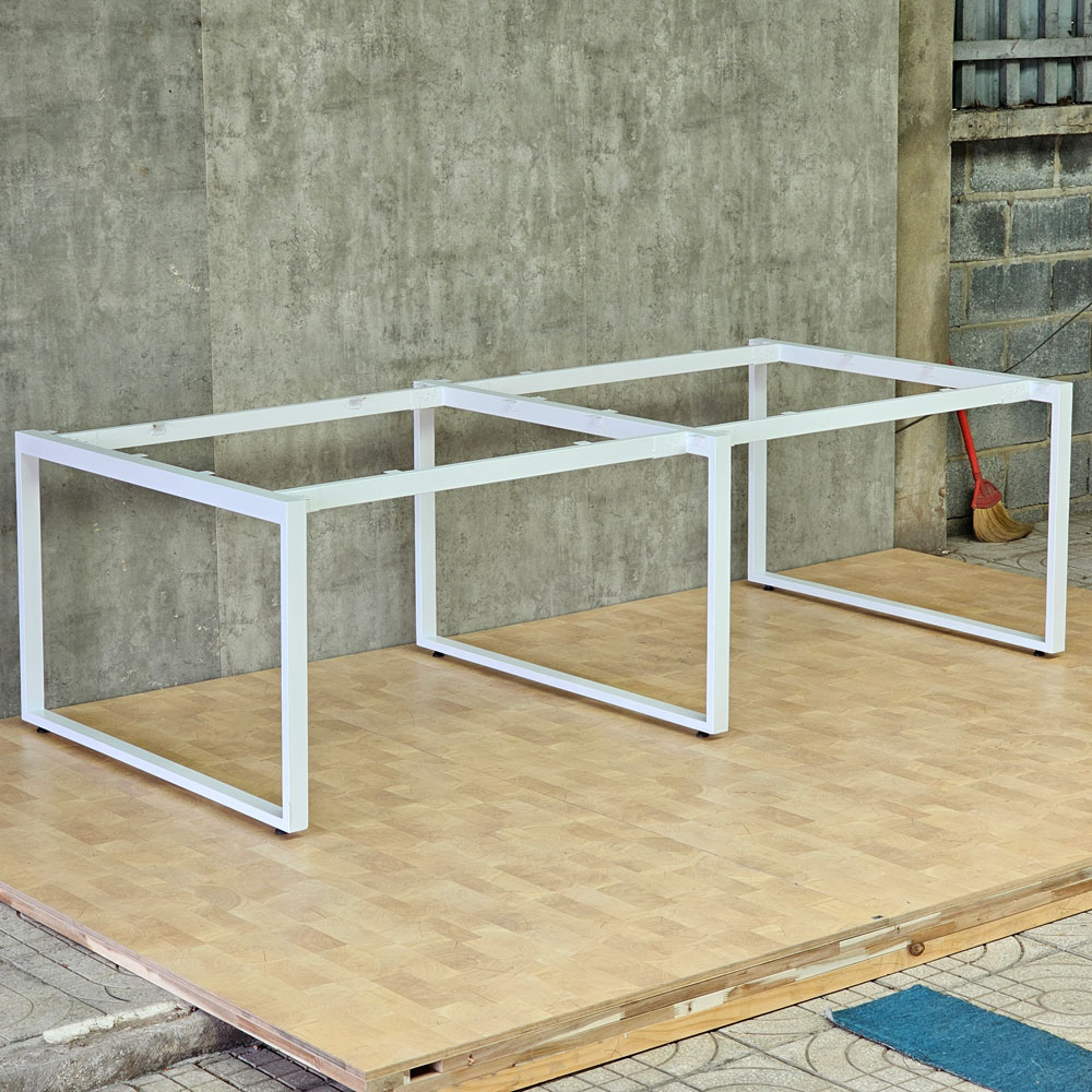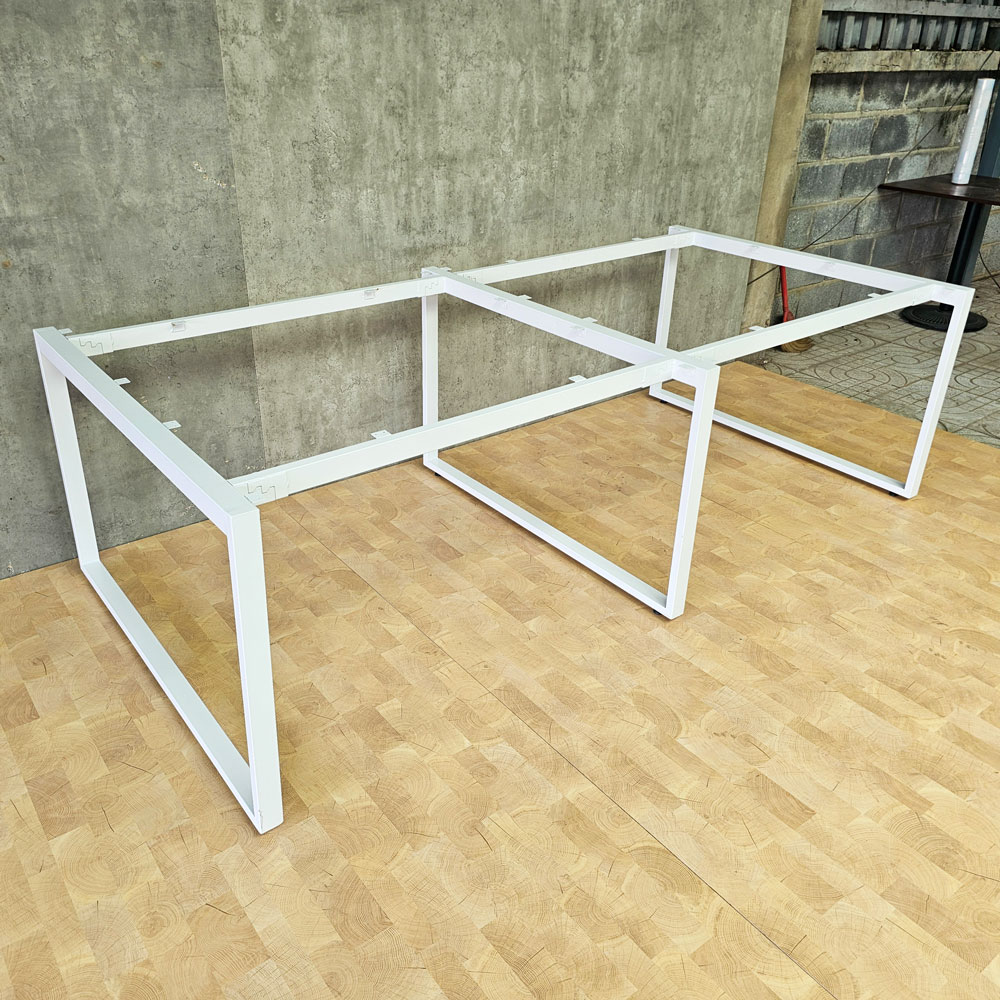 Chân sắt bàn cụm 4 hệ Rectang 120x240cm lắp ráp HCRT013 thiết kế dành cho bàn cụm 4 chỗ ngồi đối diện kích thước tiêu chuẩn 120x240cm mỗi người ngồi sẽ là 60x120cm chân kiểu chữ nhật hai chân hai bên lắp ráp ngàm chắc chắn, hệ chân được làm từ sắt hộp 25x50mm và sắt 50x50mm sắt dày 1.2mm sơn tĩnh điện cao cấp với nhiều màu sắc, khung chân ngàm cải tiến cho bề mặt phẳng có thể đặt mọi chất liệu mặt bàn