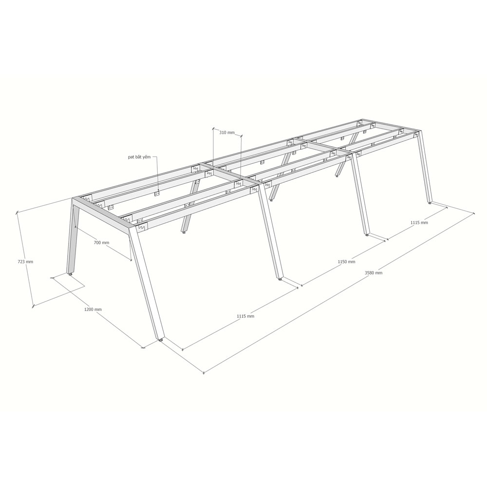 Chân sắt cho bàn cụm 6 người 358x120cm hệ Aton HCAT029