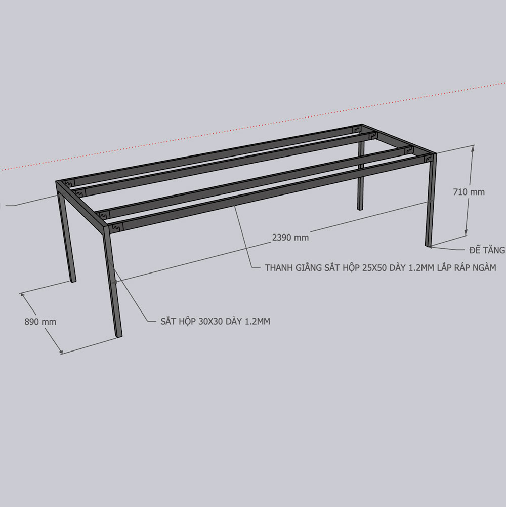 Chân sắt lắp ráp 240x90cm hệ Slean HCSL037