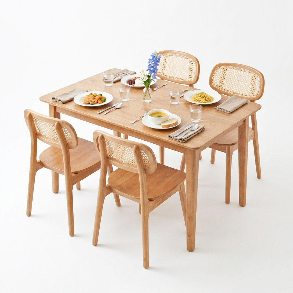 Combo bàn ăn chữ nhật và 4 ghế ăn BBA232