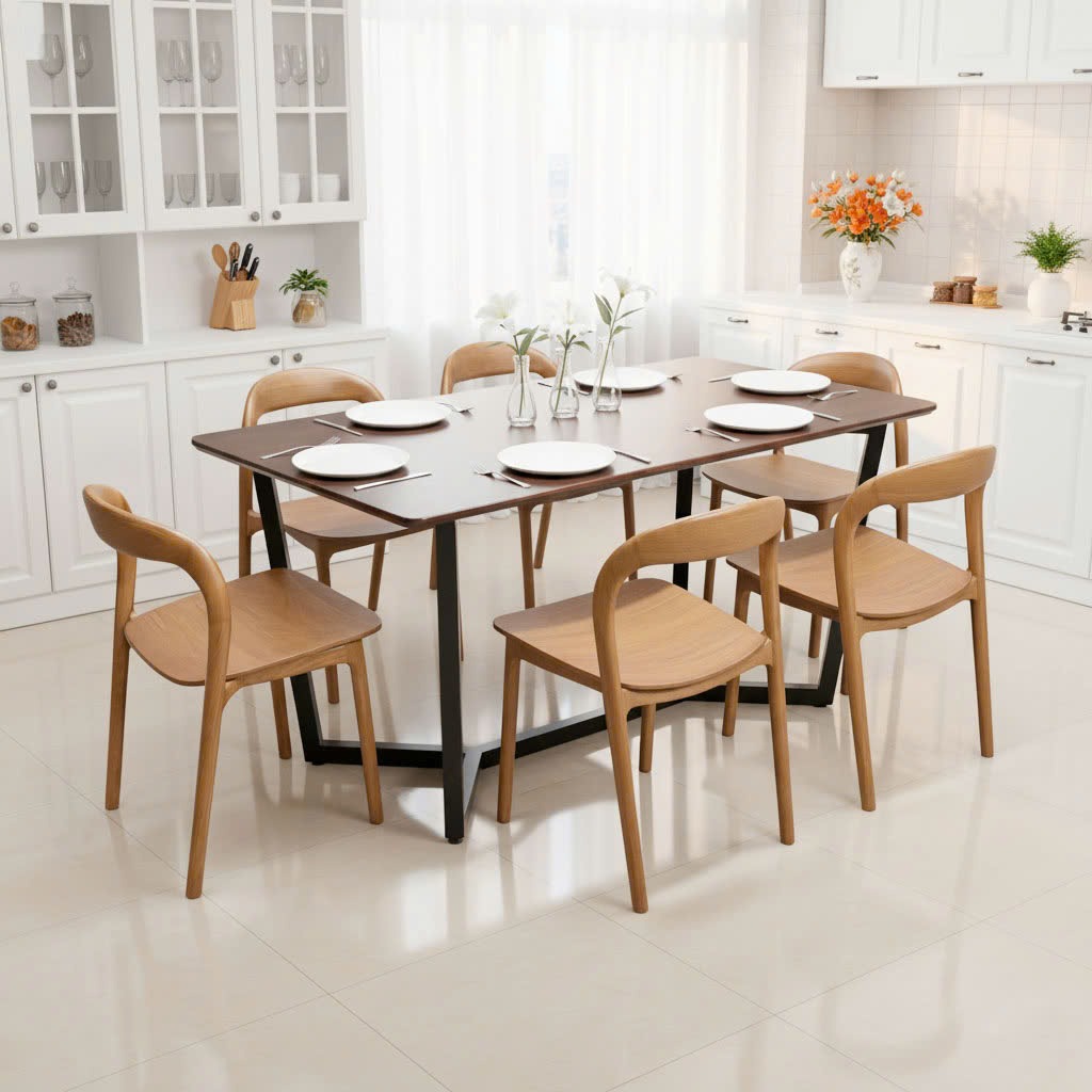 Combo bàn ăn chữ nhật và 6 ghế Neva không tay BBA220
