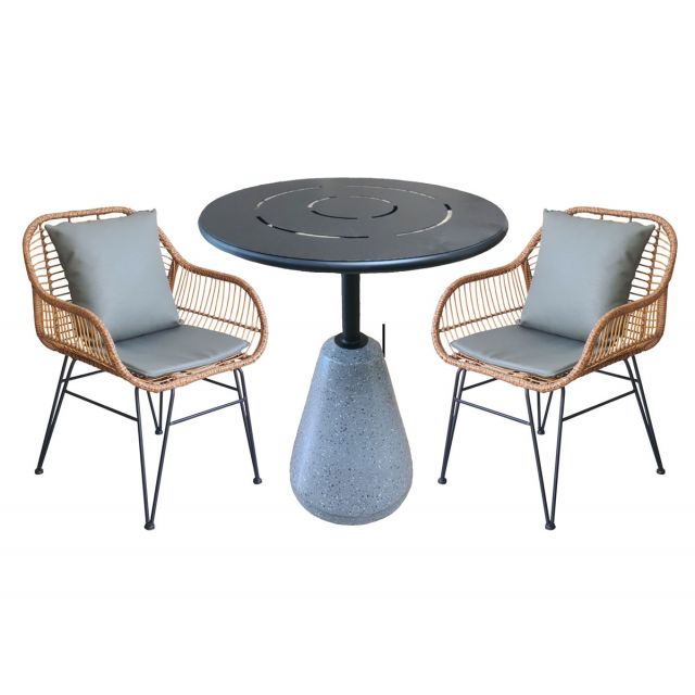 Combo bàn cafe tròn chân bê tông và 2 ghế giả mây ngoài trời CBCF298