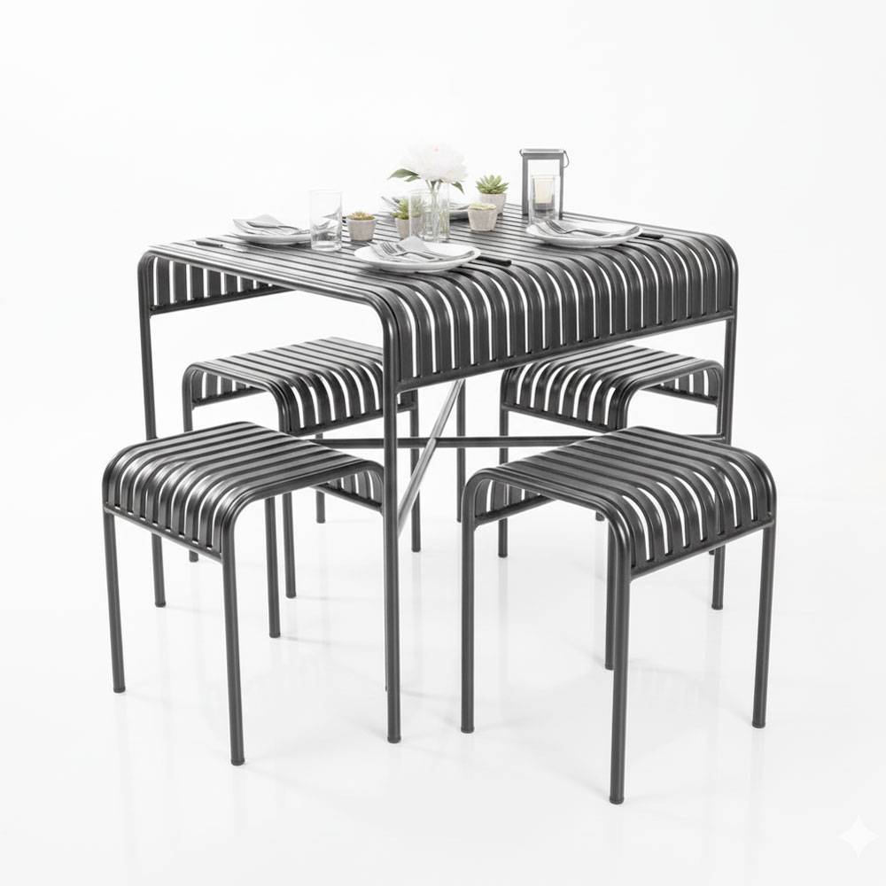 Trong combo CBNT014 bao gồm 1 bàn sắt vuông, 4 ghế đôn sắt