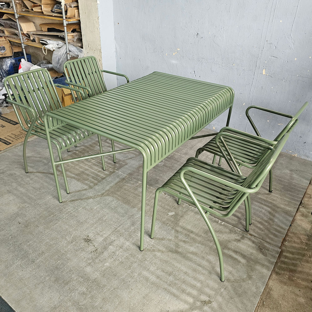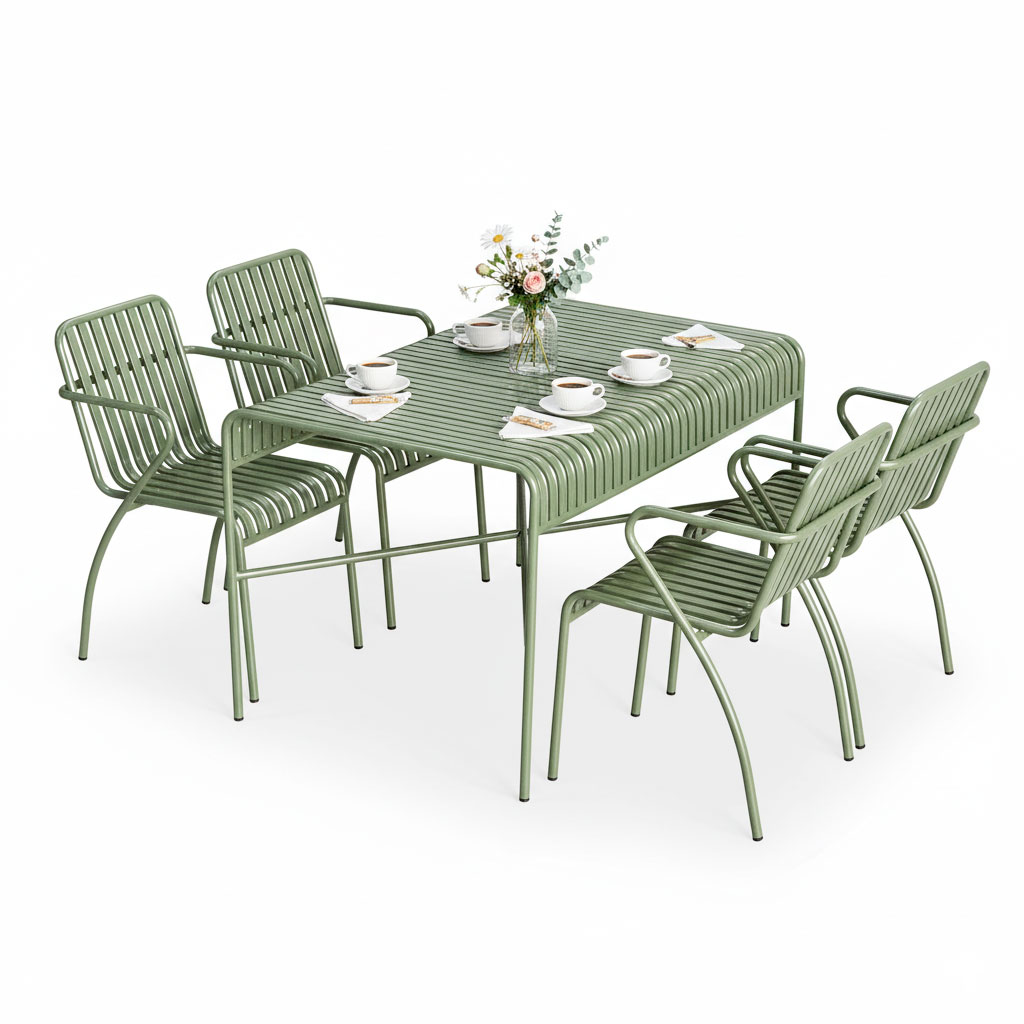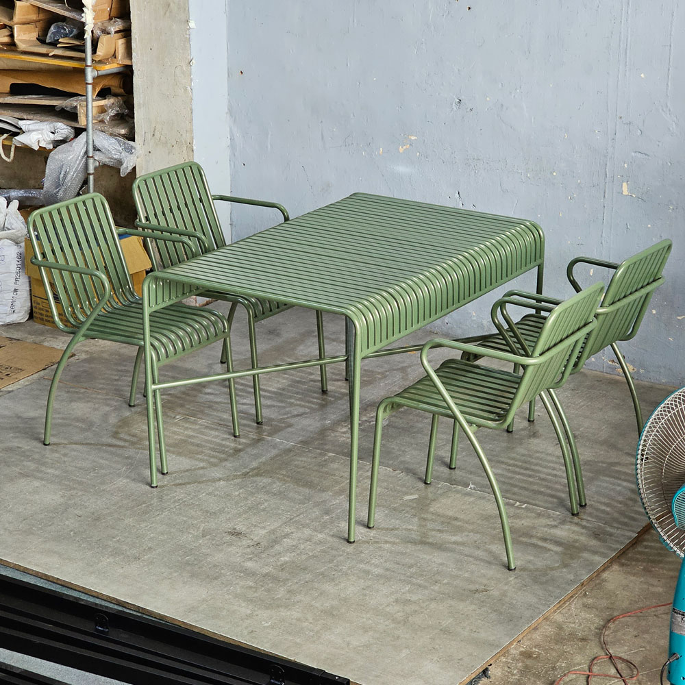 Trong combo CBNT021 bao gồm 1 bàn sắt chữ nhật và 4 ghế lưng tựa