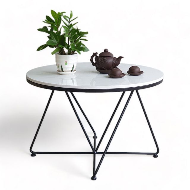 Bàn sofa tròn 70cm mặt đá chân sắt TT68207