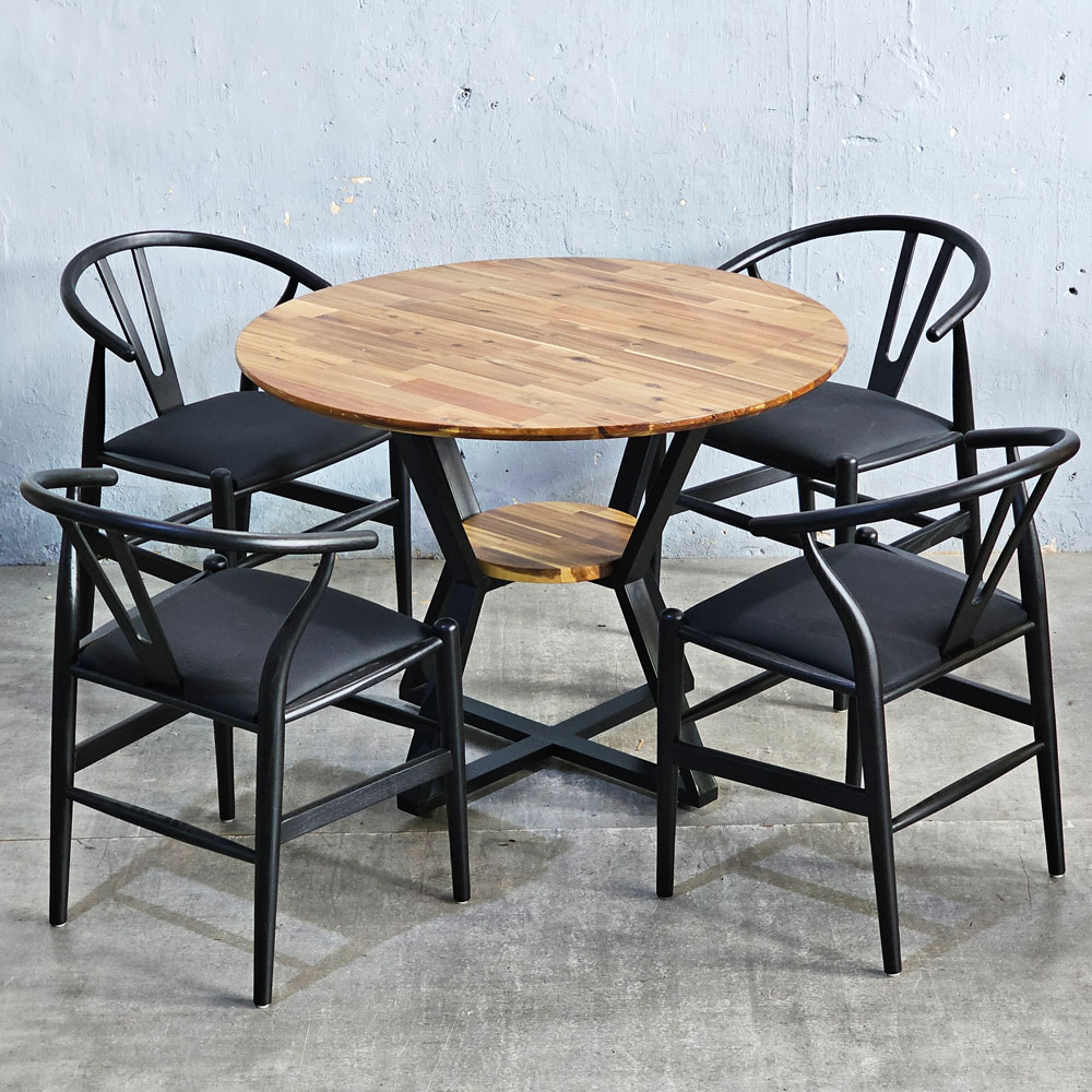 Combo bộ bàn ăn tròn và 4 ghế Wishbon gỗ BBA226