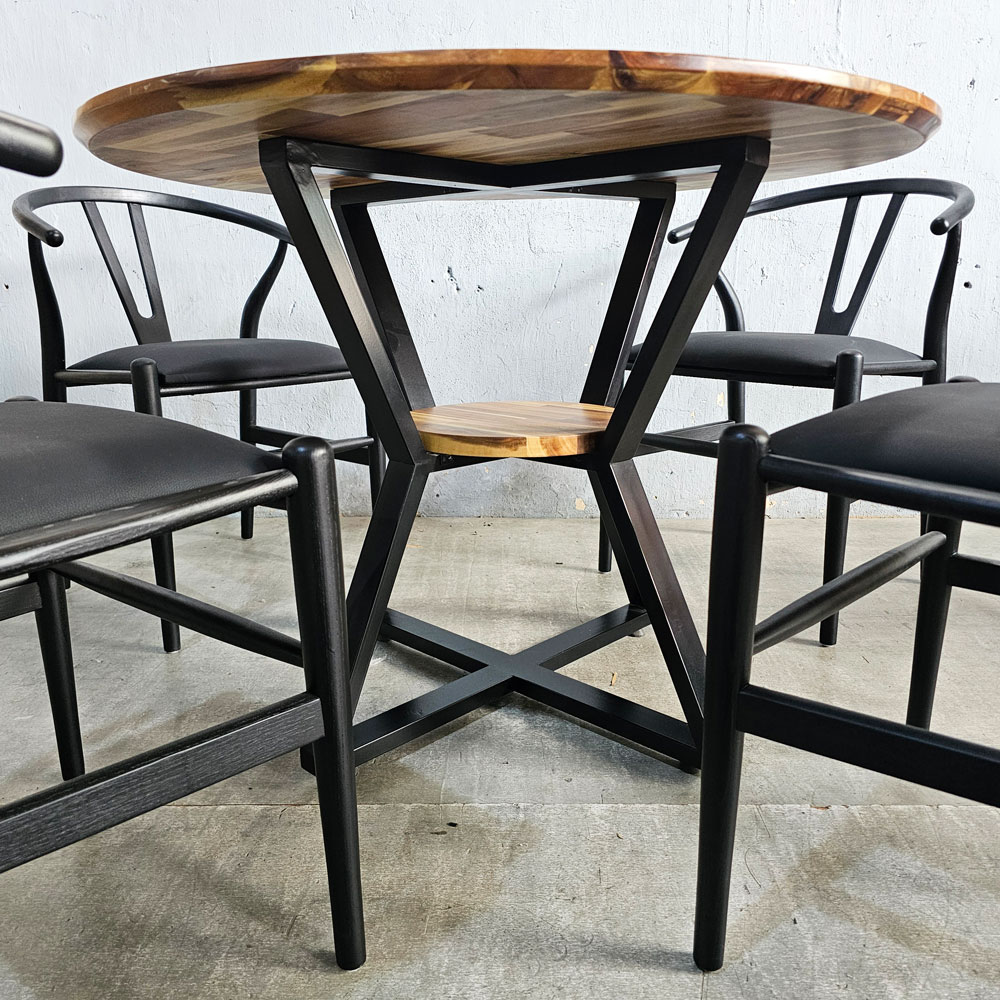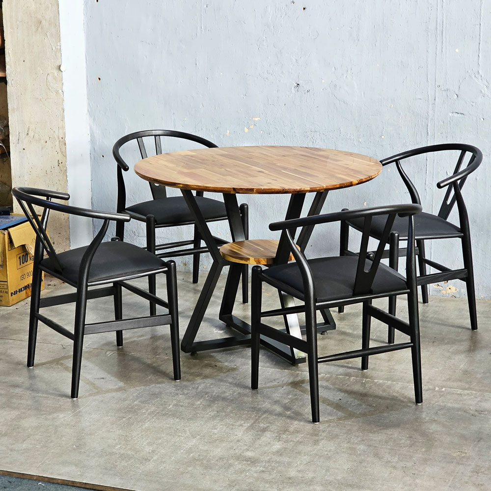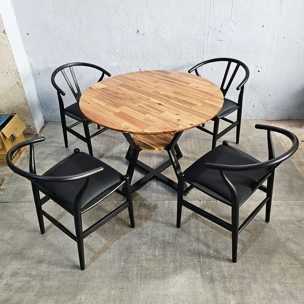 Trong combo BBA226 bao gồm 1 bàn ăn tròn và 4 ghế Wishbon gỗ
