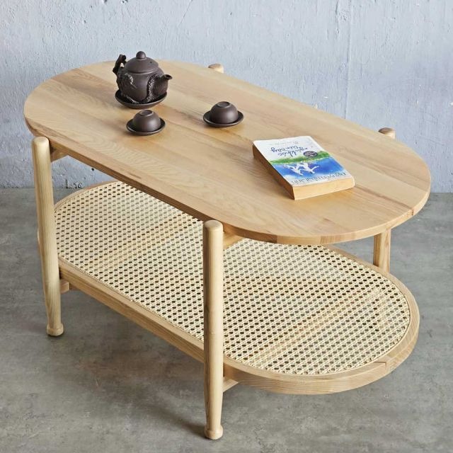 Bàn sofa hình Oval 2 tầng 100x50x52cm gỗ tần bì TT68263