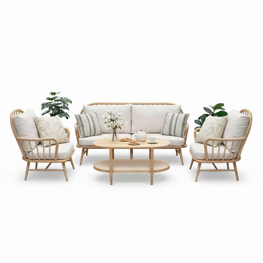 Combo bộ bàn ghế sofa Song Trúc gỗ Ash CBSF68064