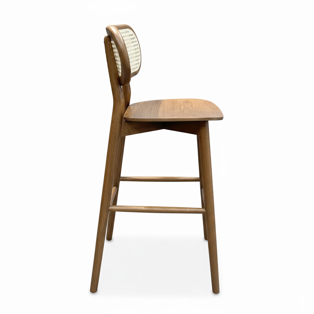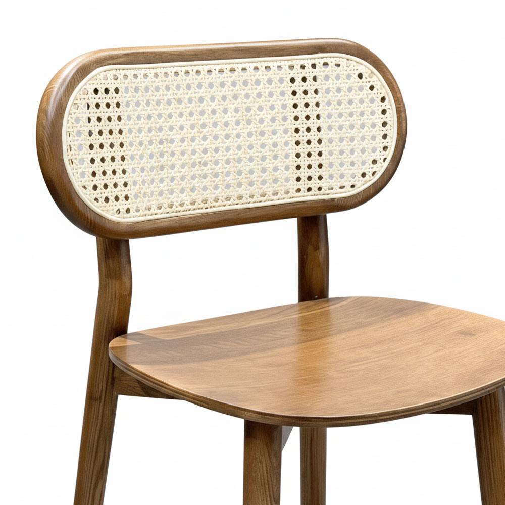 - Chất liệu: Gỗ ASH, lưng tựa mây mắt cáo màu tự nhiên, mặt ghế được làm bằng gỗ plywood