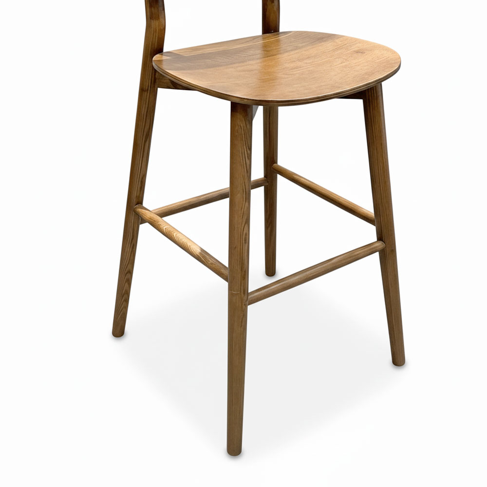 Ghế bar GBSK013 được làm bằng chất liệu gỗ tần bì, một loại gỗ tự nhiên có độ cứng rất cao, vân gỗ đẹp mắt và tươi sáng. Đây là loại gỗ được nhập khẩu, đã được xử lý sấy khô, bề mặt phủ PU chống thấm, giúp tăng tính thẩm mỹ cũng như đảm bảo sự bền bỉ trong quá trình sử dụng. Với độ cứng cao, gỗ tần bì mang lại khả năng bám dính keo và ốc vít tốt, dễ dàng đánh bóng bề mặt. Vân ghế gỗ tự nhiên đẹp mắt và sang trọng.