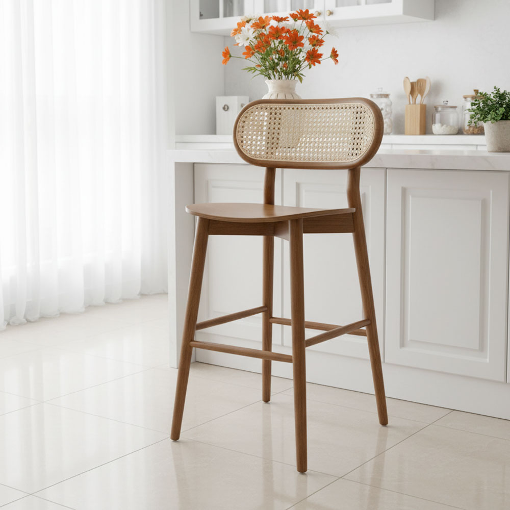 Lưng tựa ghế bar GBSK013 được làm từ mây đan mắt cáo màu tự nhiên giúp mang lại sự thoải mái khi ngồi. Ghế quầy bar gỗ 4 chân cố định được liên kết chắc chắn nhờ các thanh gỗ nối. Ghế quầy bar gỗ cao 75cm phù hợp sử dụng với bàn cao từ 1m – 1m1. Bạn có thể sử dụng ghế với mục đích khác nhau như ghế bar cafe, ghế quầy thuốc, ghế chụp ảnh studio,…