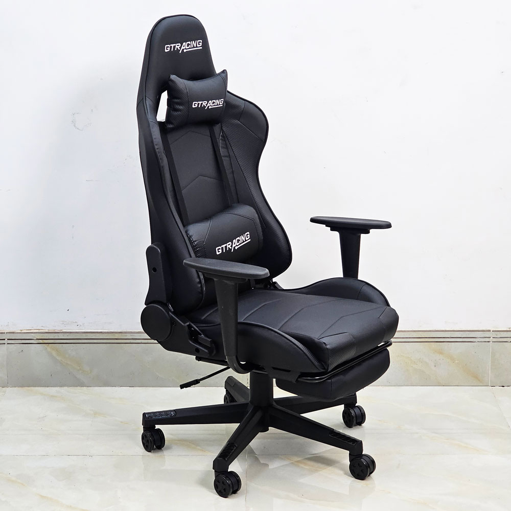 Ghế Gaming chân xoay bọc nệm đen GC68037