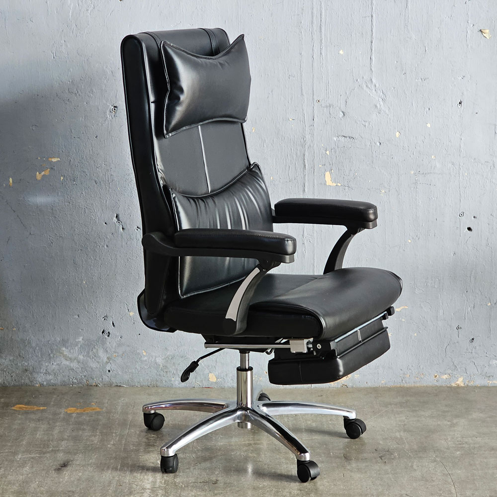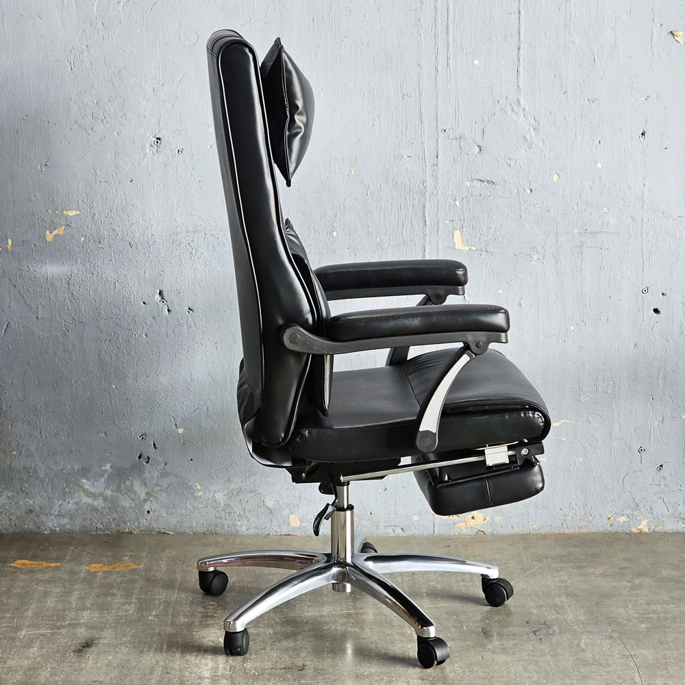 Ghế giám đốc màu đen, lưng cao, chân nhôm, 2 cần điều khiển HOM1058-01