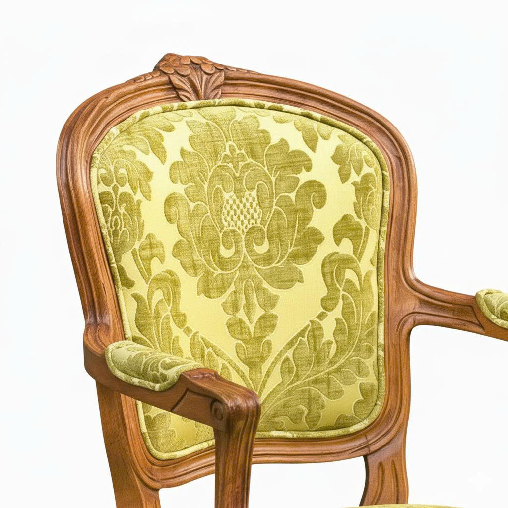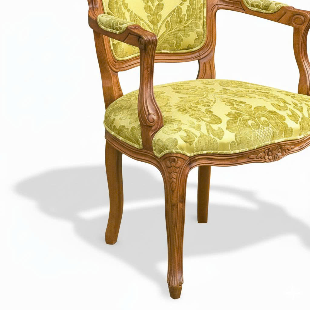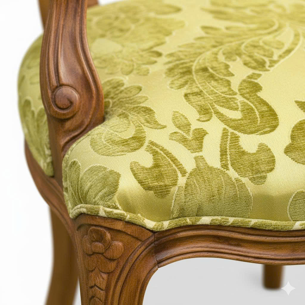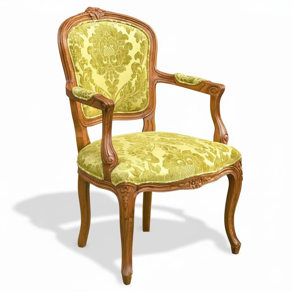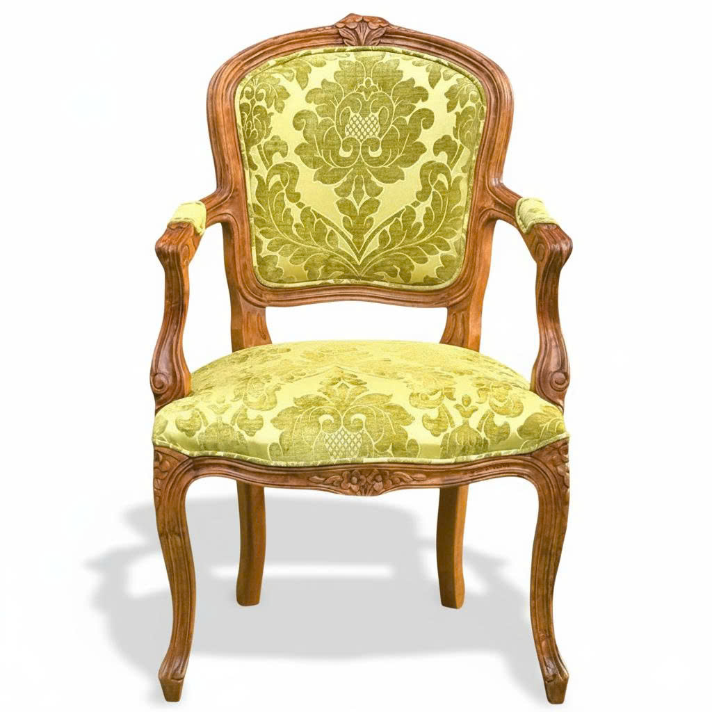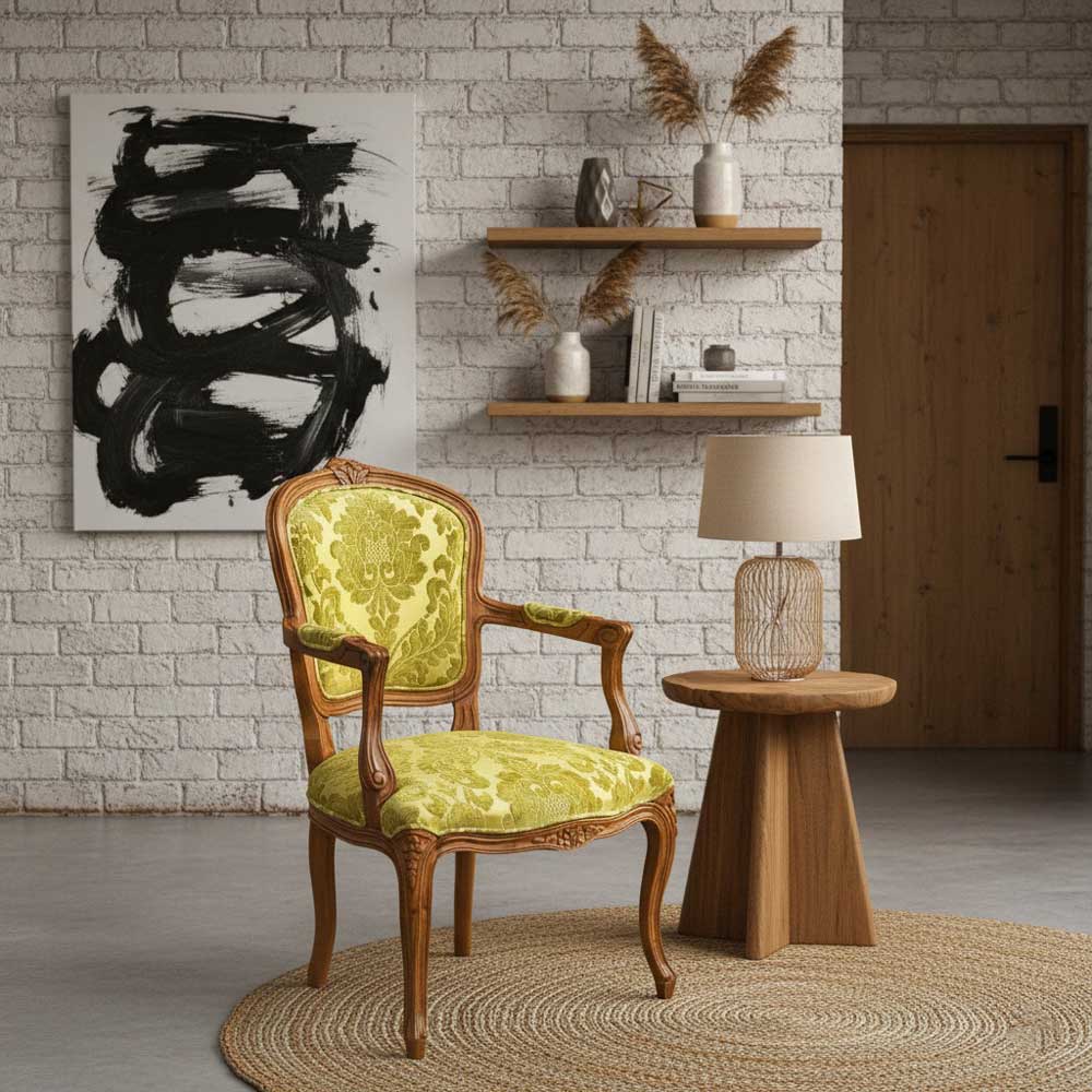 Ghế Louis bông mai vải họa tiết gỗ cao su GSK044