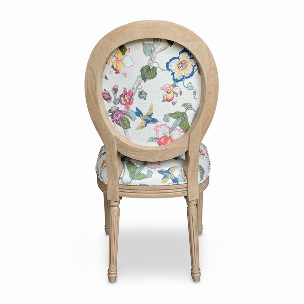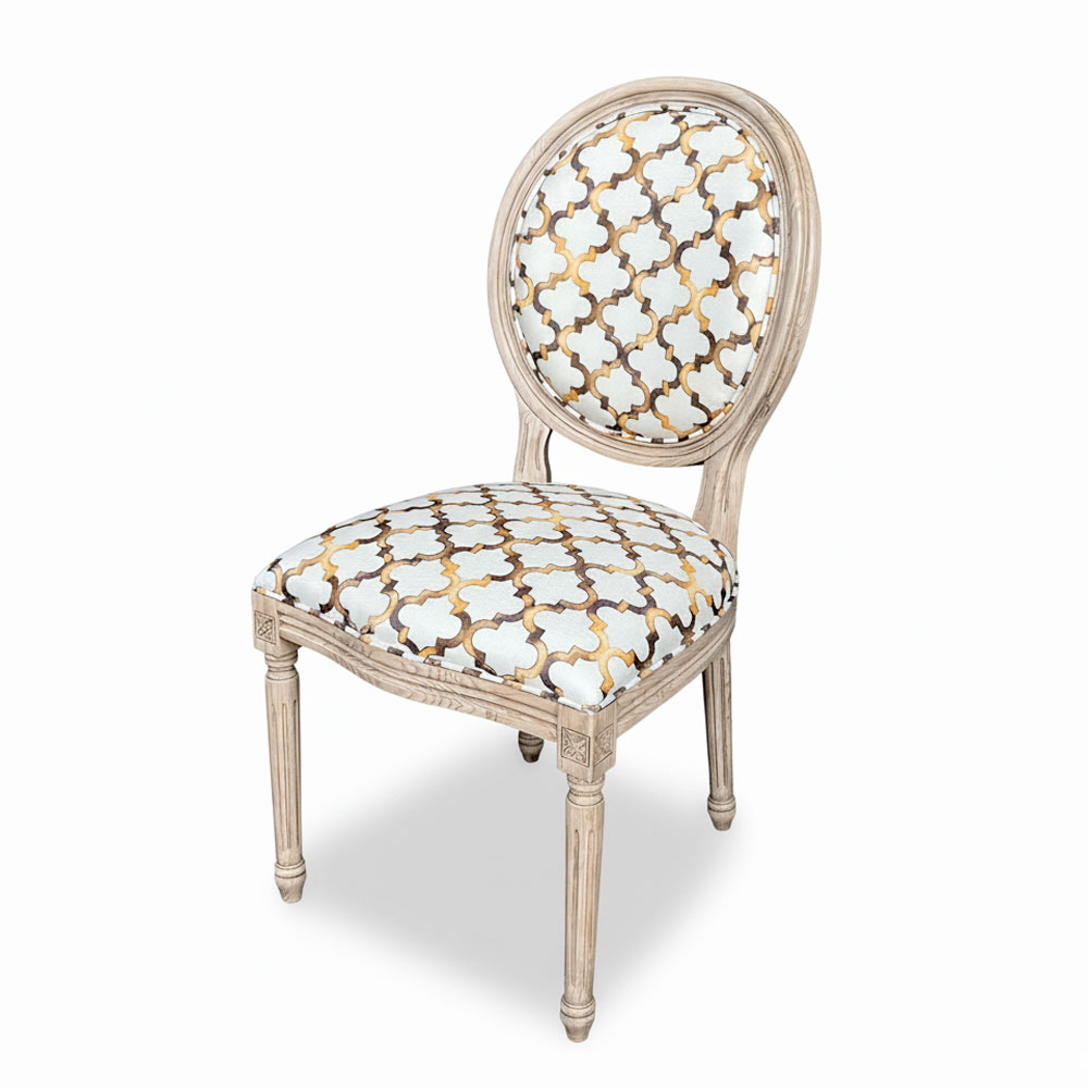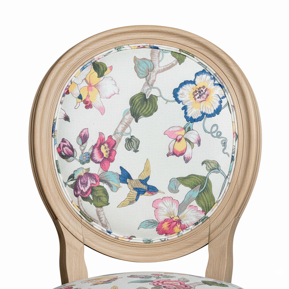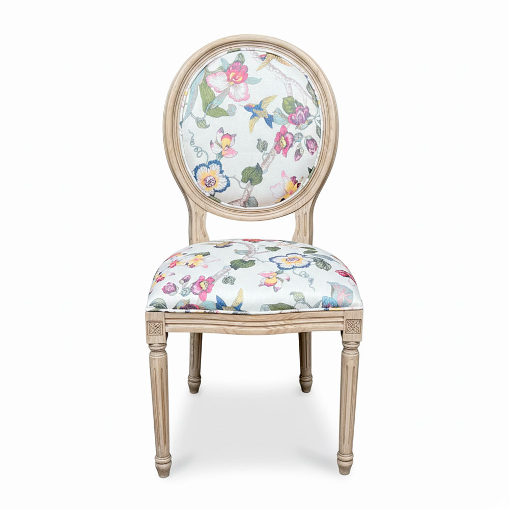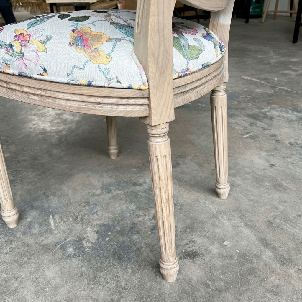 Ghế Louis không tay bọc vải hoa gỗ Ash sơn giả cổ GSK021