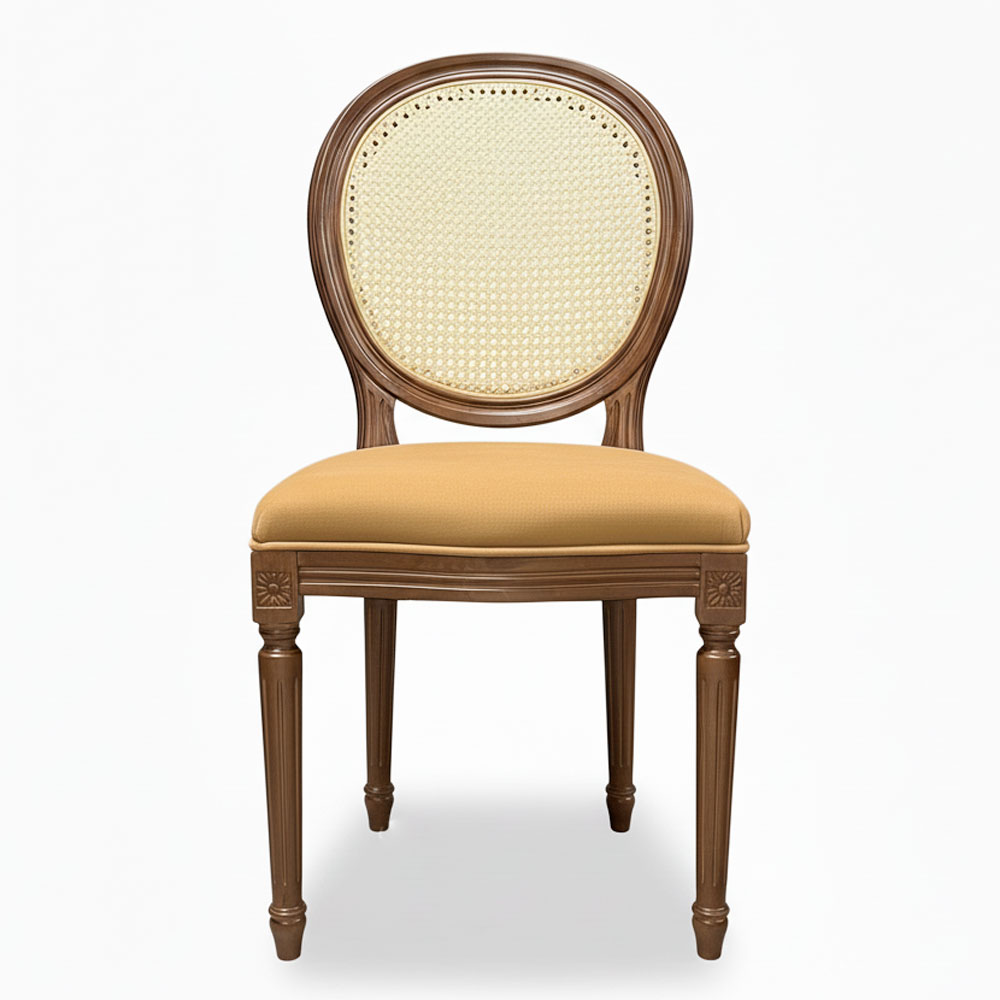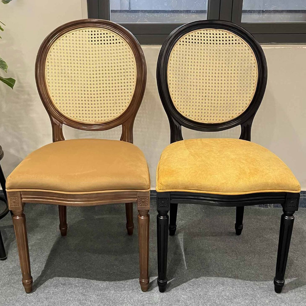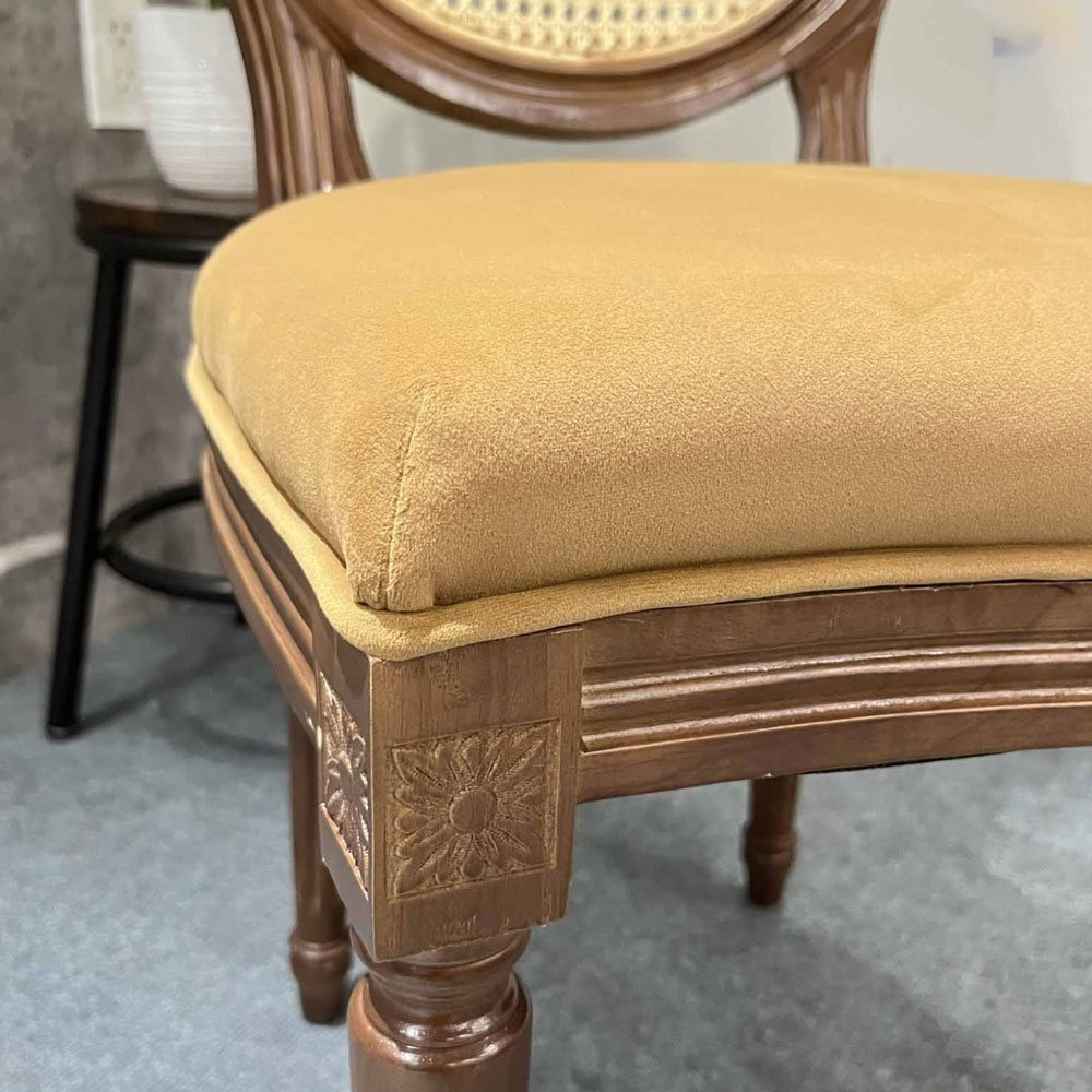 Ghế Louis lưng mây không tay gỗ cao su bọc vải nhung GSK022