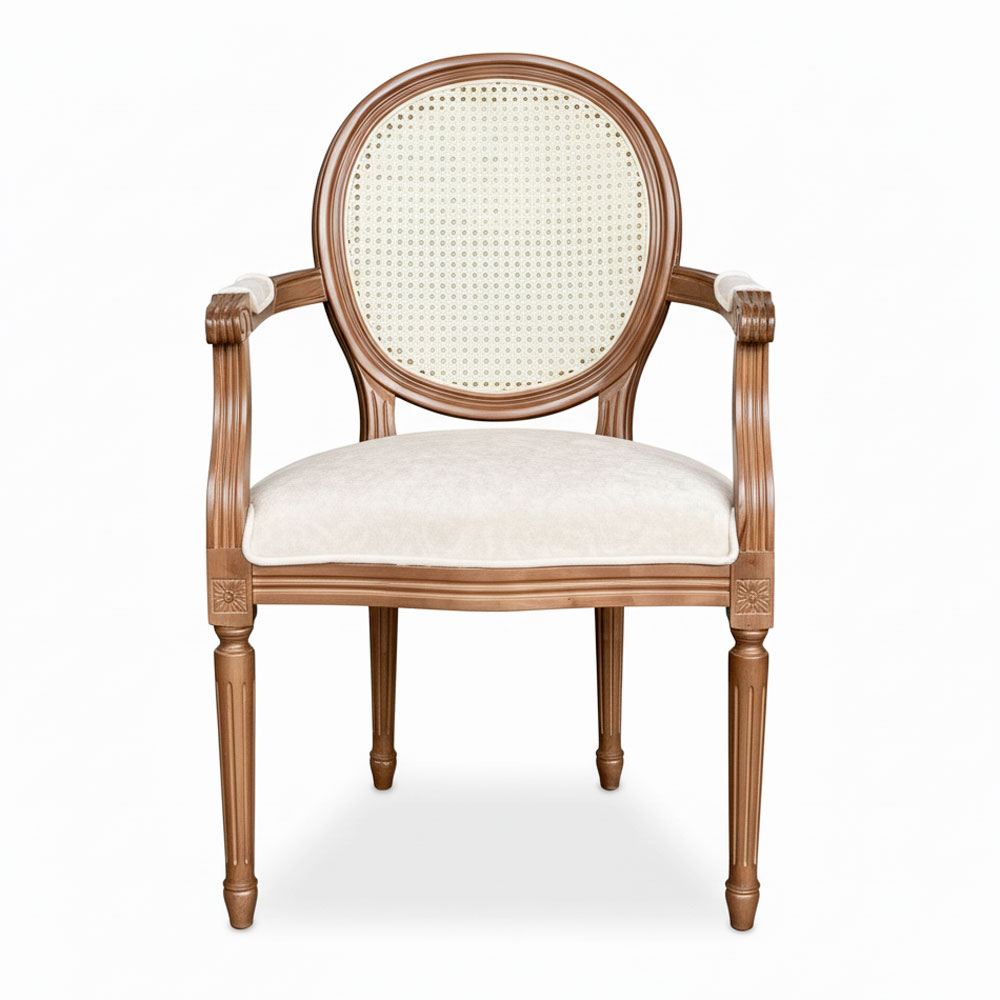 Ghế Louis có tựa lưng lưới mây gỗ cao su bọc da Si GSK024