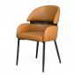 Chất liệu da silicon cao cấp bọc toàn bộ phần ngồi và tựa lưng, mang đến trải nghiệm ngồi êm ái, thoáng mát và dễ chịu. Bề mặt da trơn mịn, không bám bụi bẩn, rất dễ dàng vệ sinh và bảo quản. Sự kết hợp hài hòa giữa màu sắc trầm ấm của da và sắc đen mạnh mẽ của khung kim loại tạo nên một tổng thể vừa cổ điển vừa hiện đại. Chi tiết đường viền nhựa đen ở phần lưng ghế không chỉ là một điểm nhấn về màu sắc mà còn đóng vai trò quan trọng trong việc phân chia tỷ lệ, tạo nên sự cân đối hài hòa cho thiết kế. Nhờ đó, chiếc ghế trở nên nổi bật hơn và thu hút mọi ánh nhìn.
