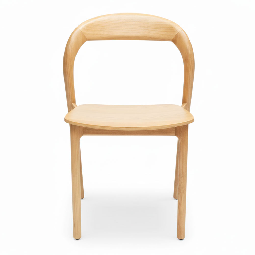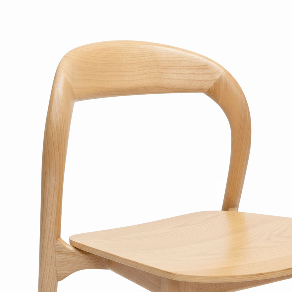 - Mặt ghế bằng gỗ plywood uốn cong, để lộ cạnh