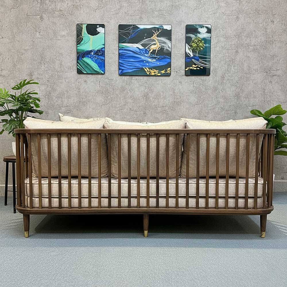 Ghế sofa băng 1m8 KBH nan gỗ nệm da SFB68068