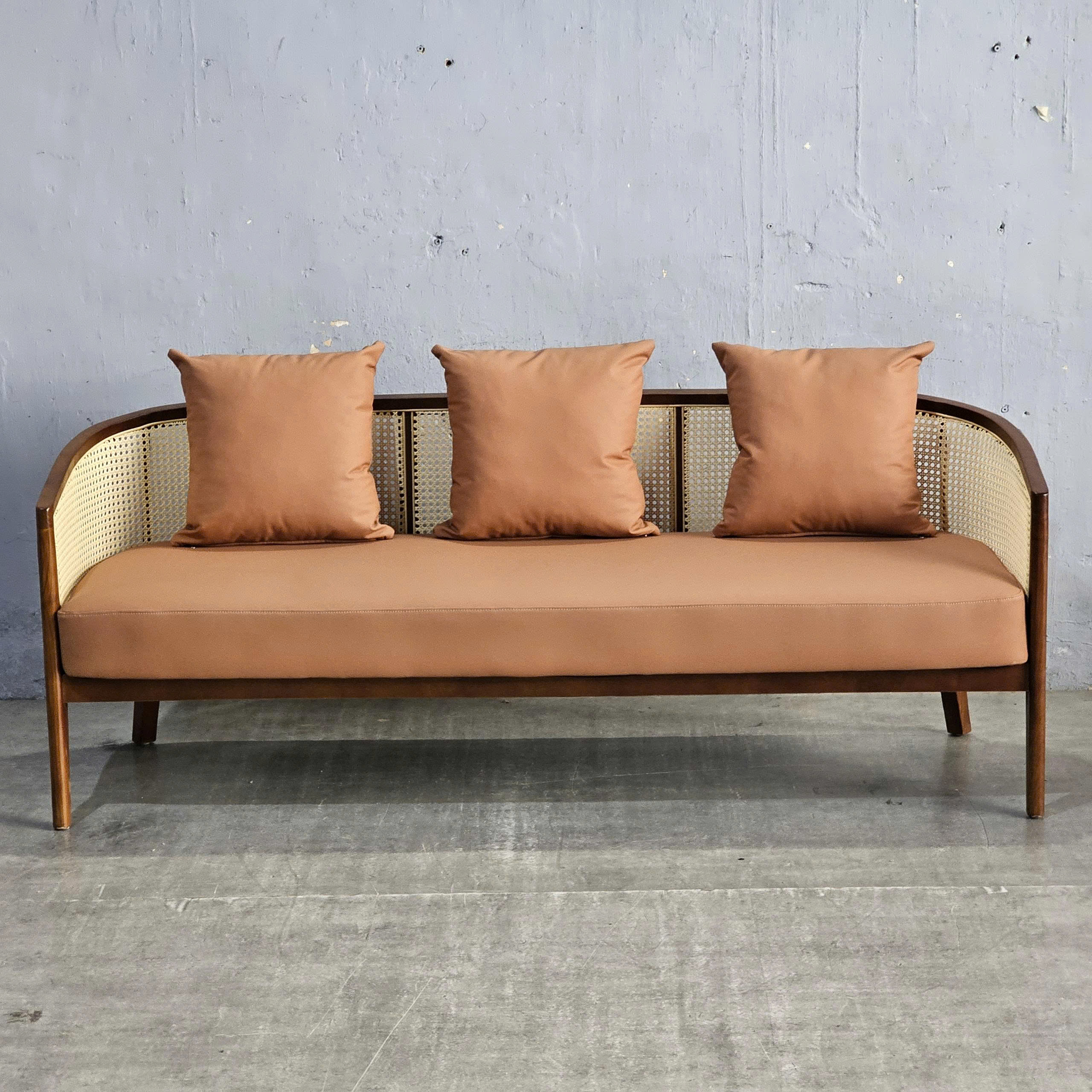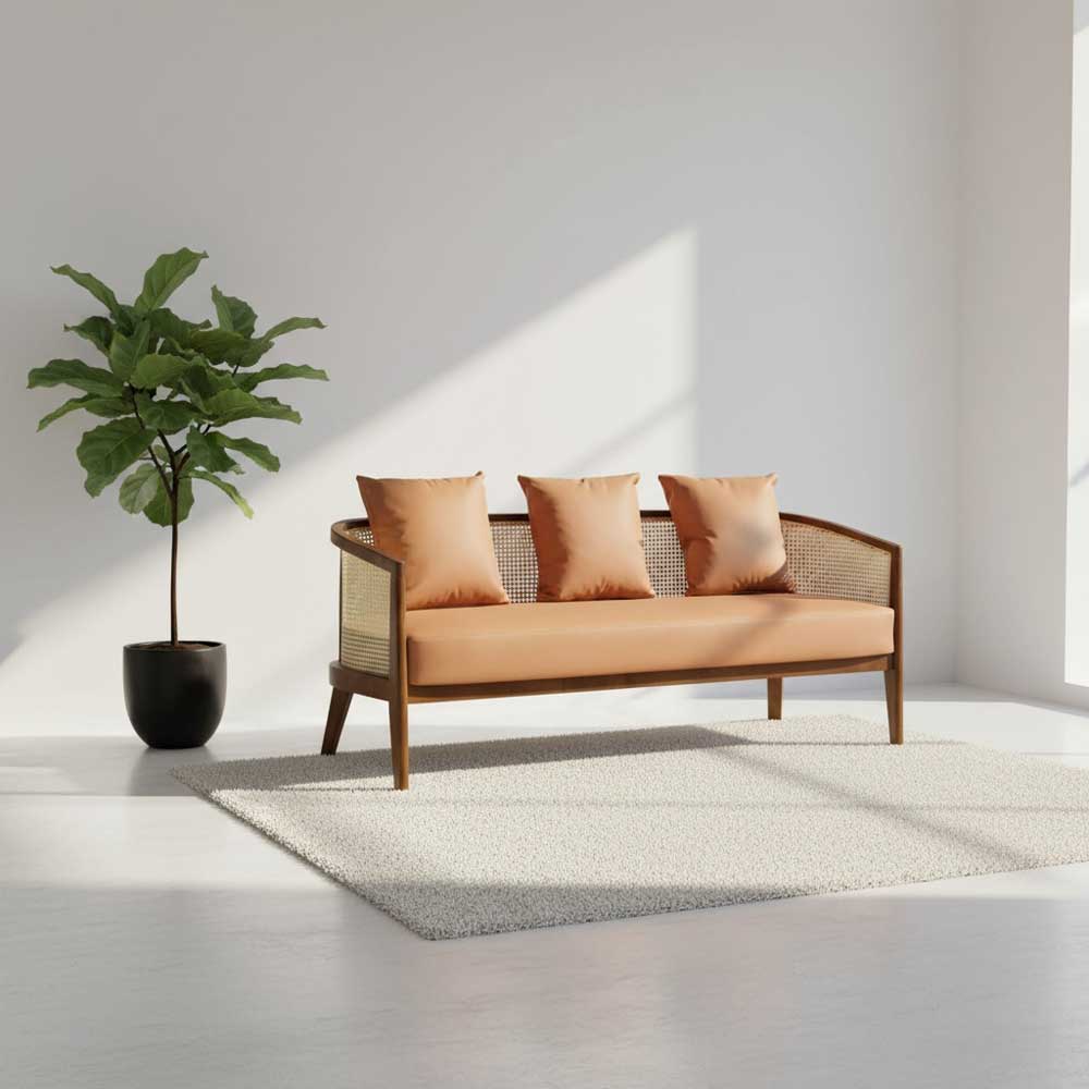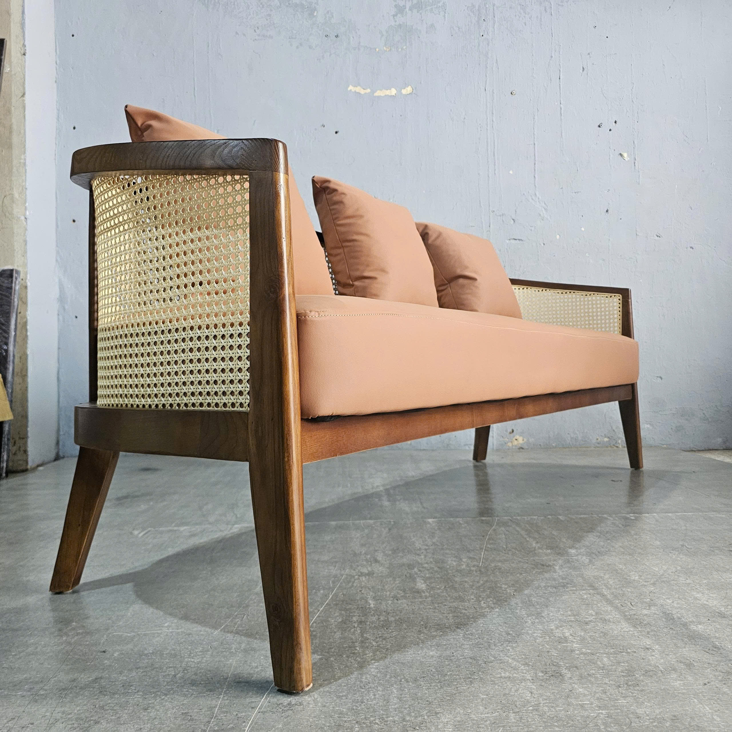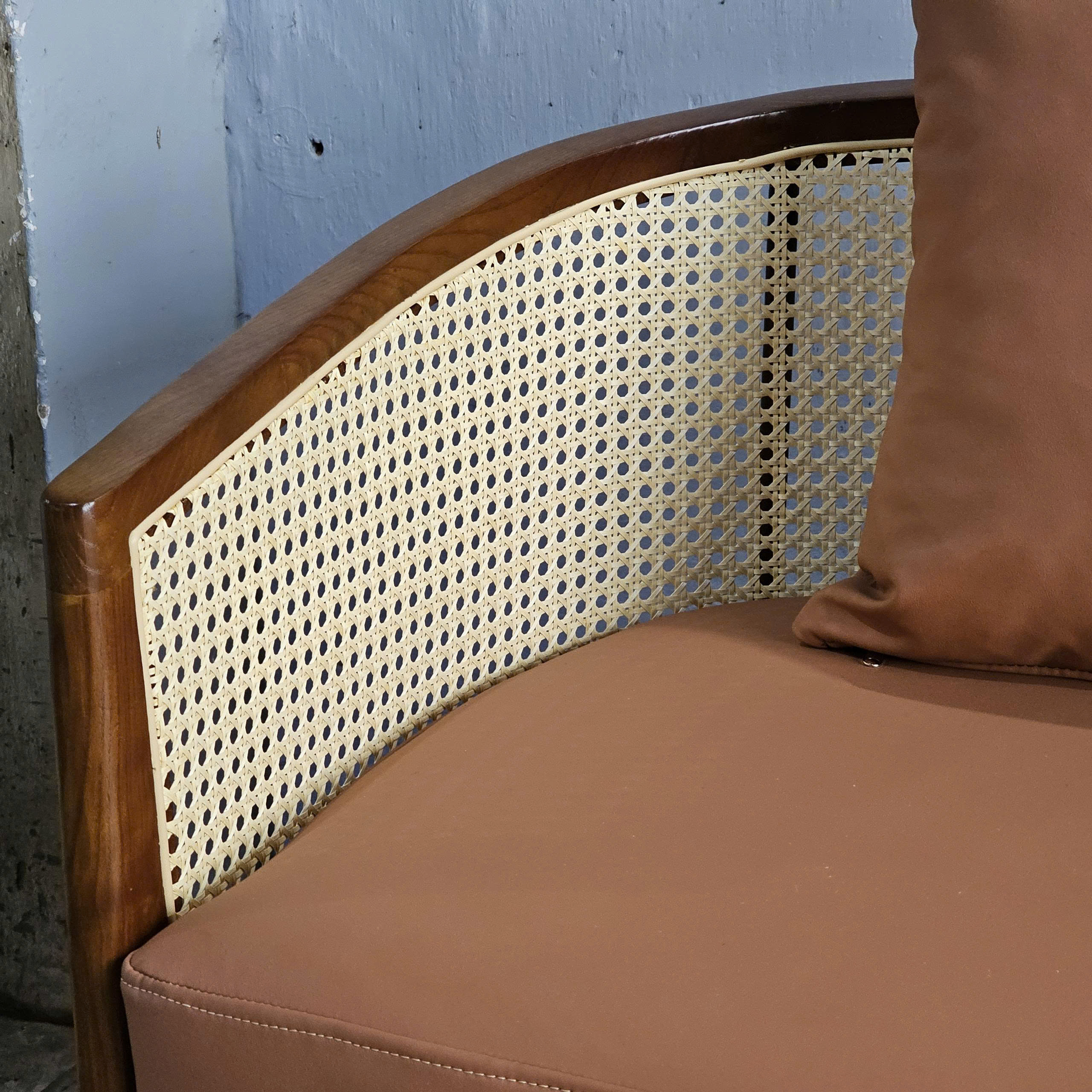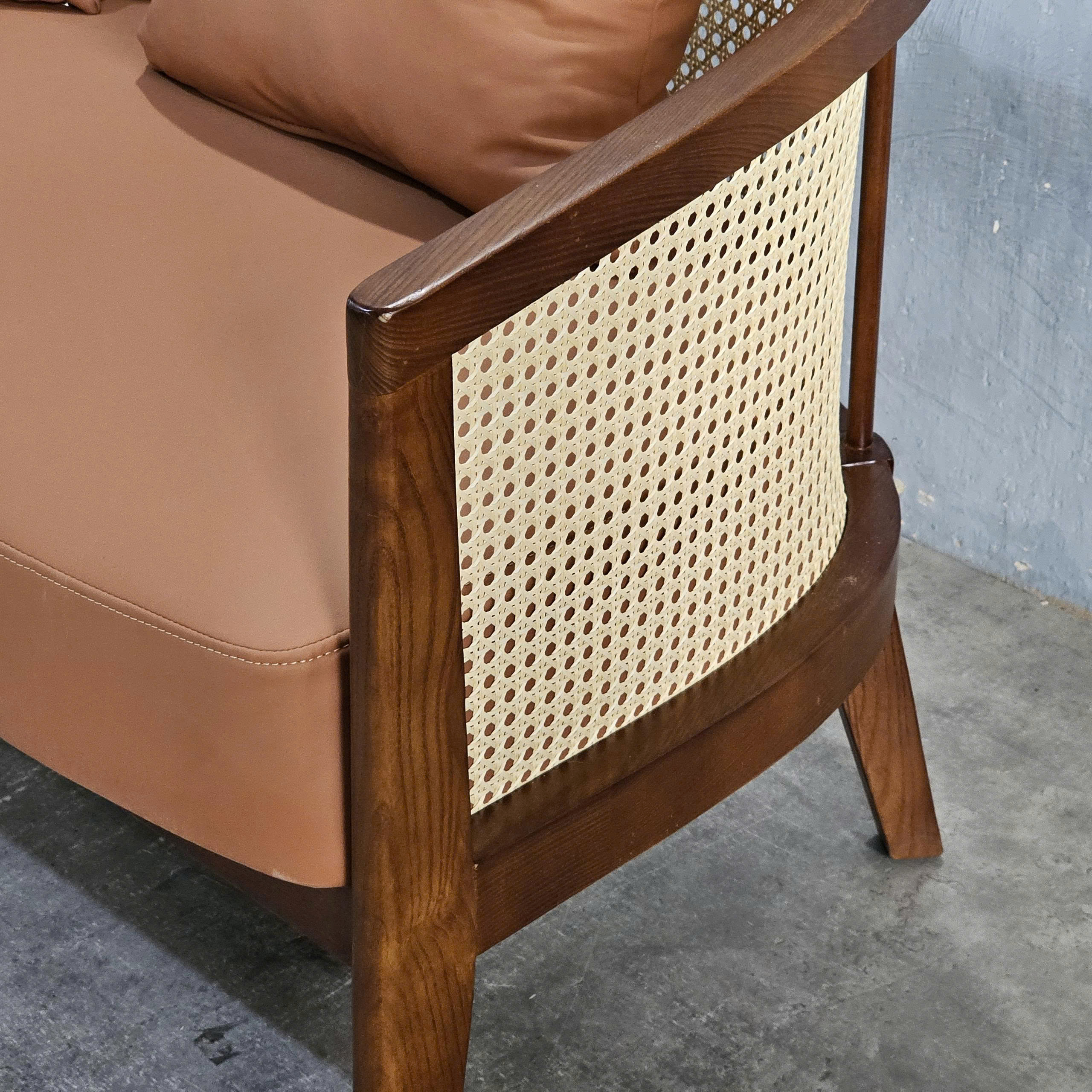 - Chất liệu : Khung gỗ Ash (tần bì), lưới mây. Nệm bọc vải