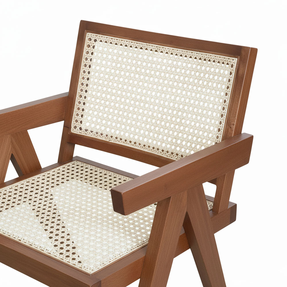 Ghế V-Leg có tay gỗ tần bì lưới mây đan mắt cáo GCF166