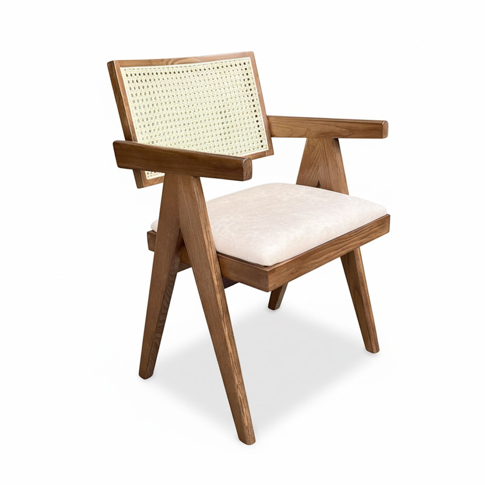 Ghế V-Leg có tay nệm bọc vải gỗ Ash GSK032