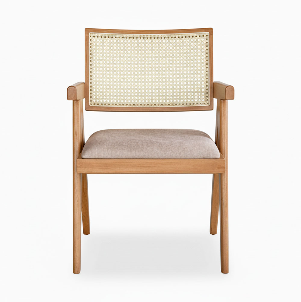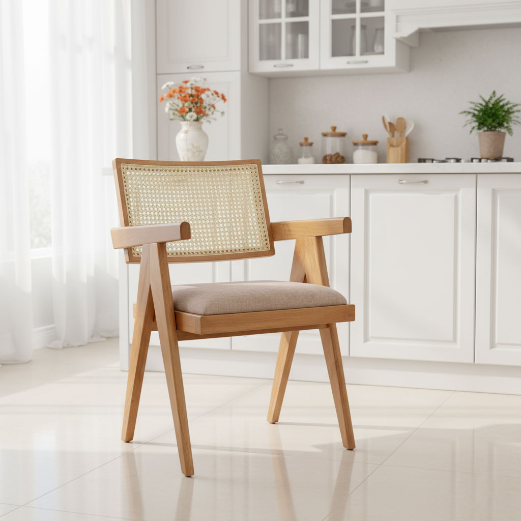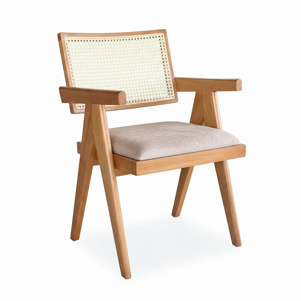Ghế V-Leg có tay nệm bọc vải gỗ cao su GSK033