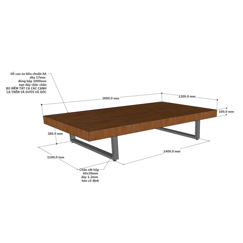 Giường ngủ 120x200cm gỗ cao su chân sắt GN68067