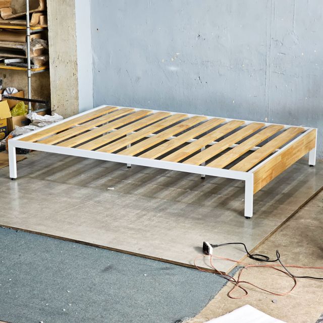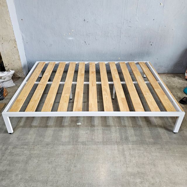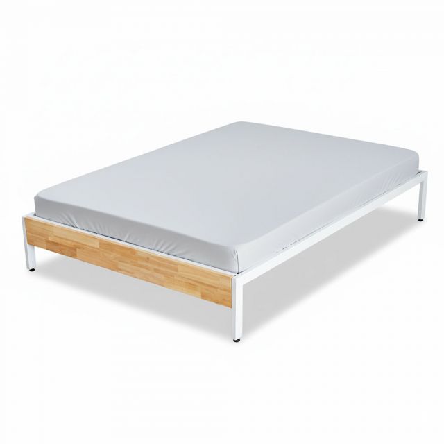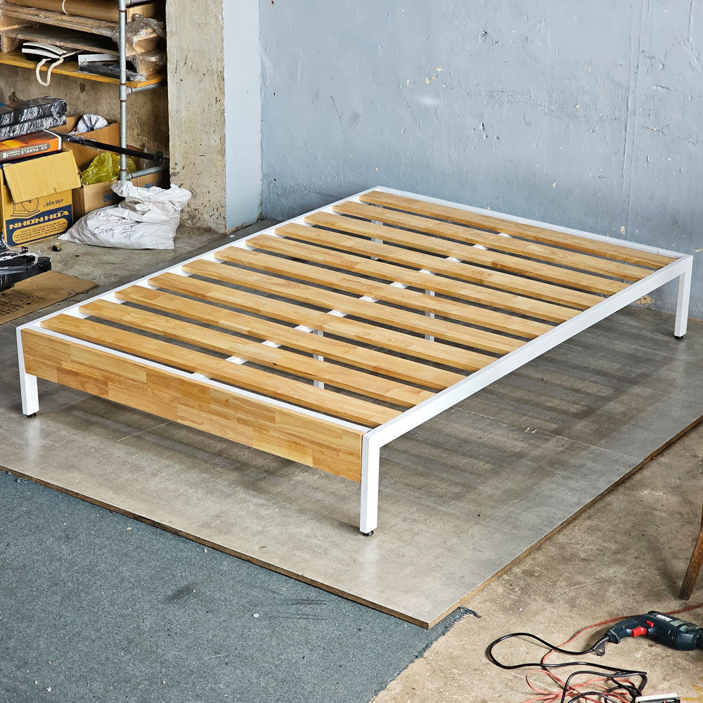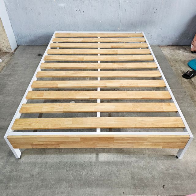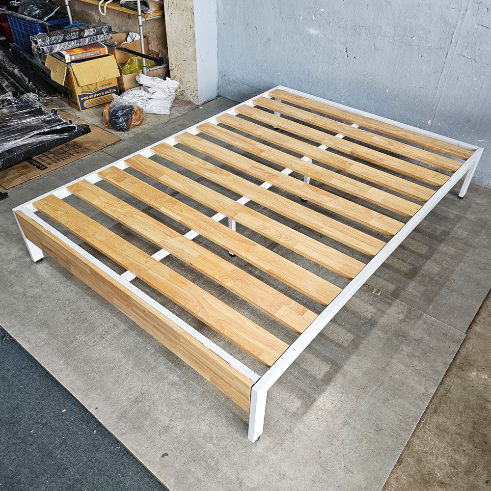 Giường ngủ đơn giản gỗ cao su khung sắt GN68034