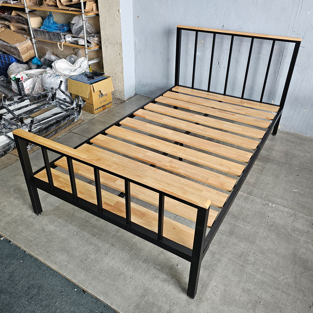 Giường ngủ 140x200cm gỗ cao su khung sắt