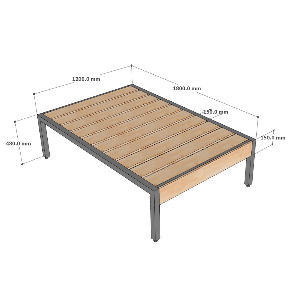 Giường ngủ lắp ráp 120x180x50cm gỗ cao su GN68061