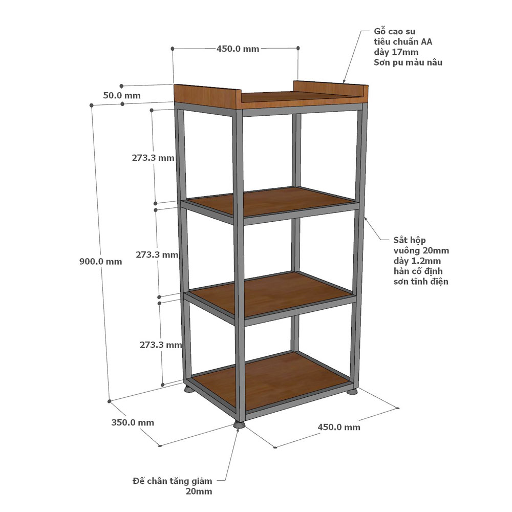 Kệ bếp 4 tầng 45x35x95cm gỗ cao su KB68088