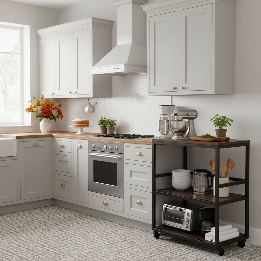 Kệ bếp di động 64x40x89cm mặt gỗ cao su KB68074