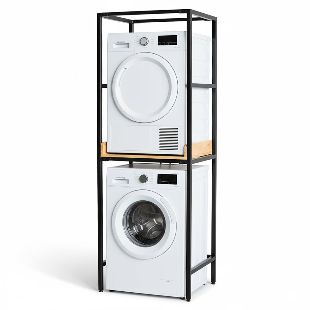 Kệ để máy giặt và máy sấy khung sắt mặt gỗ KMG68010