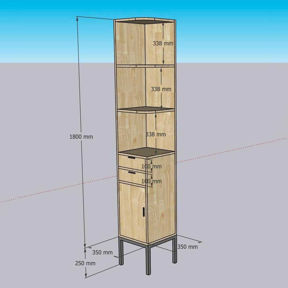 Kệ góc tường 35x35x205cm gỗ cao su KGT68052