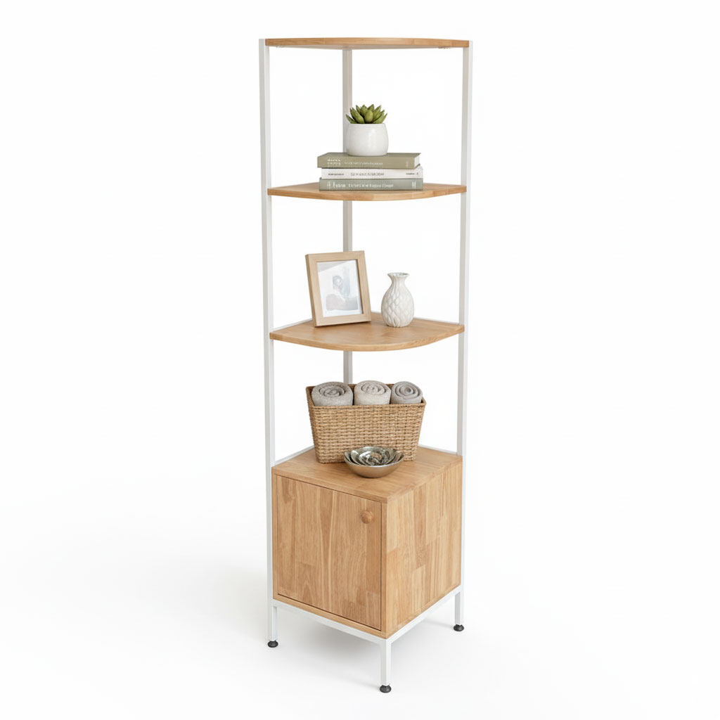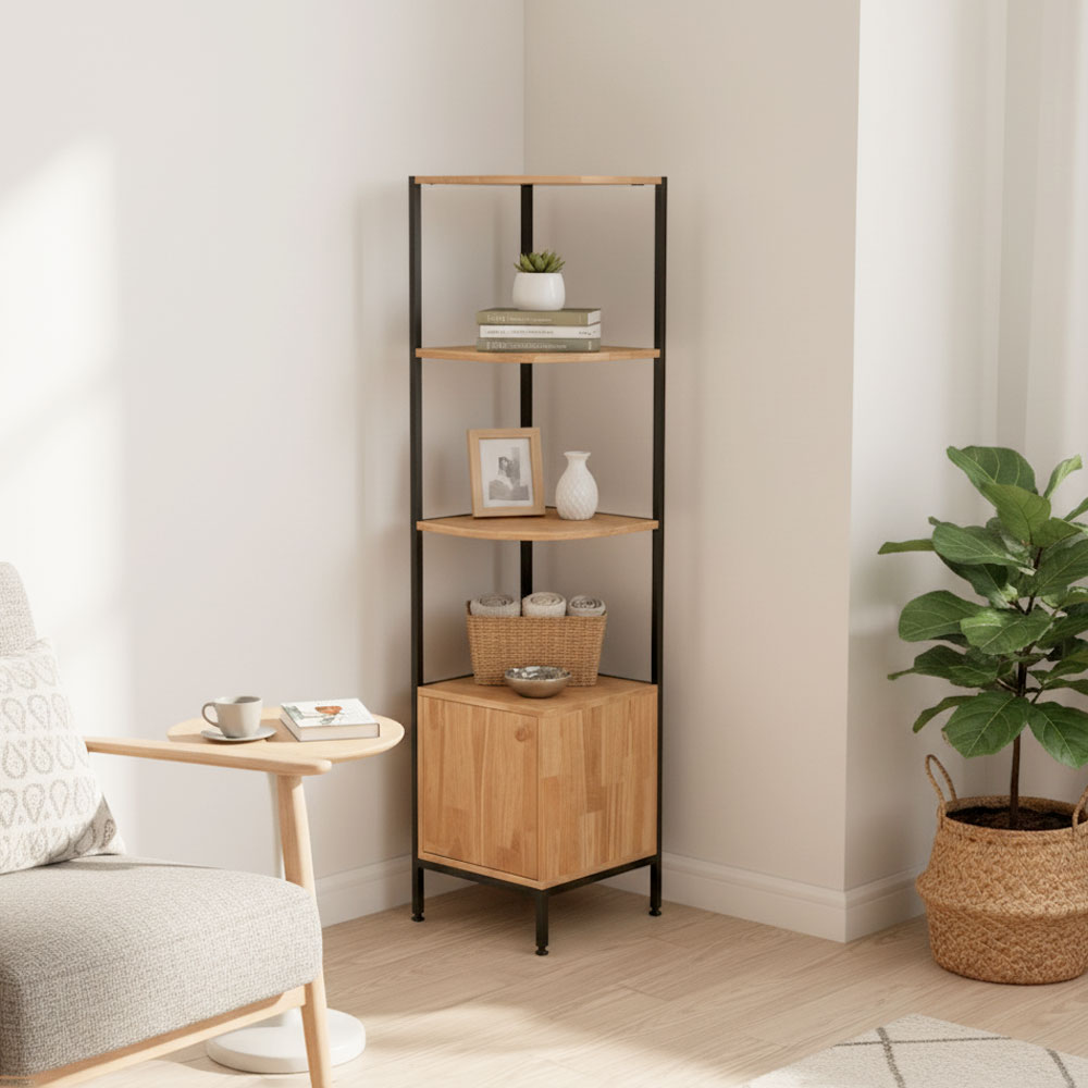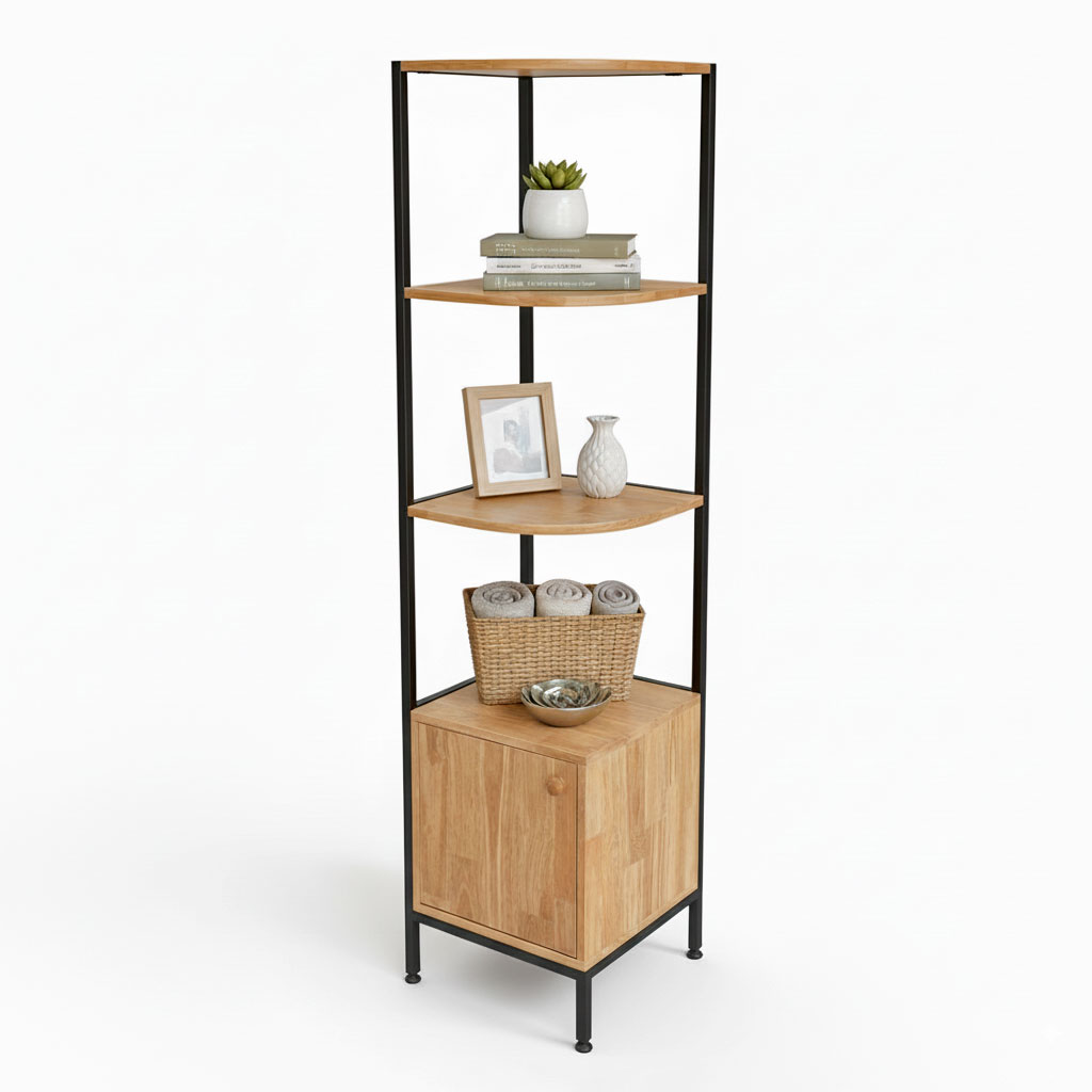 Kệ góc tường có hộc tủ gỗ tự nhiên khung sắt KGT68017