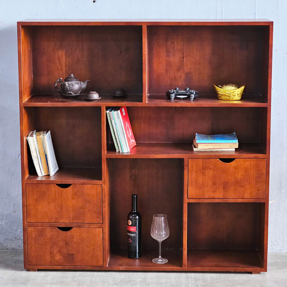 Kệ sách trang trí có ngăn kéo gỗ cao su THS68007