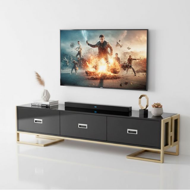 Mẫu kệ tivi 3 ngăn kéo màu vàng đồng là sự lưa chọn hoàn hảo cho phòng khách của bạn