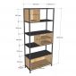 Kệ có 5 tầng với các kích thước khác nhau, được bố trí một cách thông minh giúp tạo điểm nhấn cho không gian. Tầng 1, 3 và 5 có ô làm bằng gỗ dùng để lưu trữ sách vở hoặc các vật dụng trang trí. Tầng 2 và 4 có diện tích rộng rãi hơn, có thể sử dụng để trưng bày các món đồ lưu niệm, bình hoa hoặc các vật dụng khác.