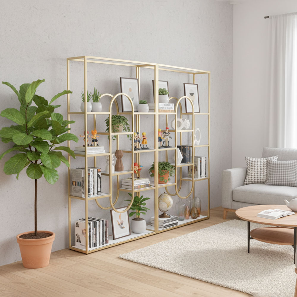 Kệ trang trí KINO ghép đôi 200x30x180cm khung sắt mặt gỗ KTB68105