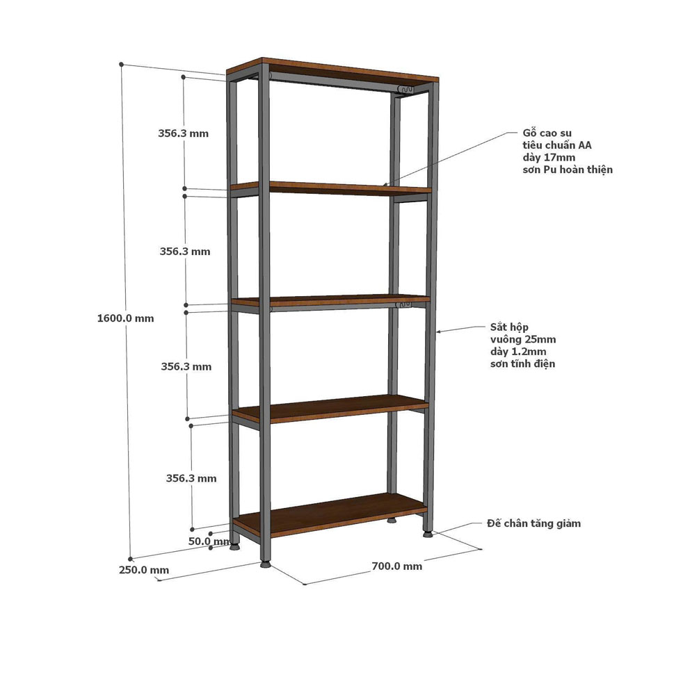 - Khung sắt hộp 20x20mm, dày 1,2mm sơn tĩnh điện