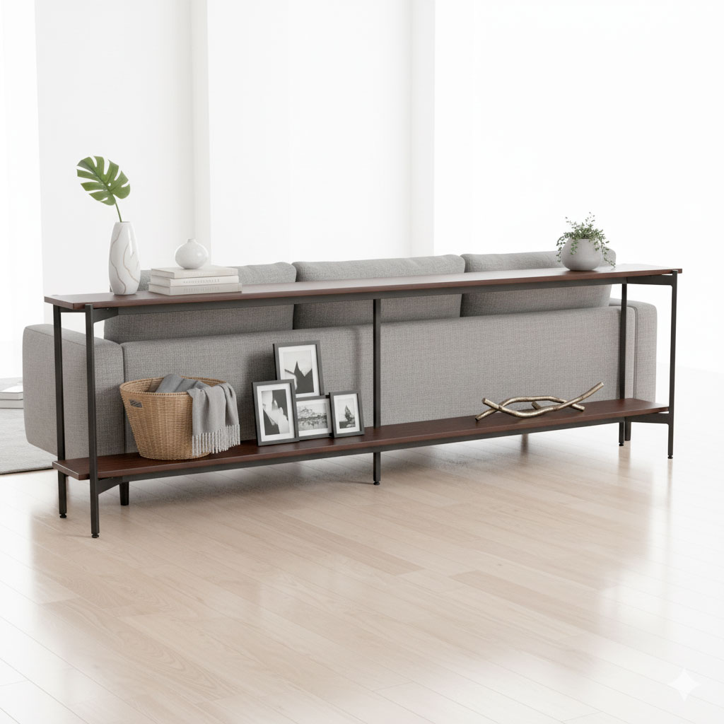 Kệ trang trí sau lưng sofa 200x30x70cm gỗ cao su KLSF001