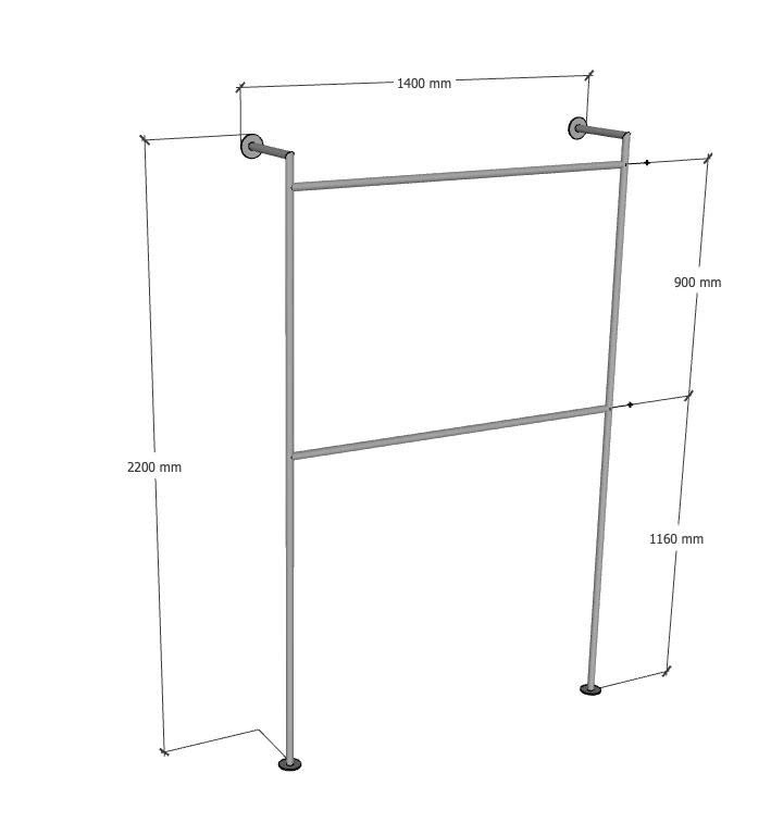 Kệ treo đồ ống nước 140x30x220cm sơn tĩnh điện KQA68068