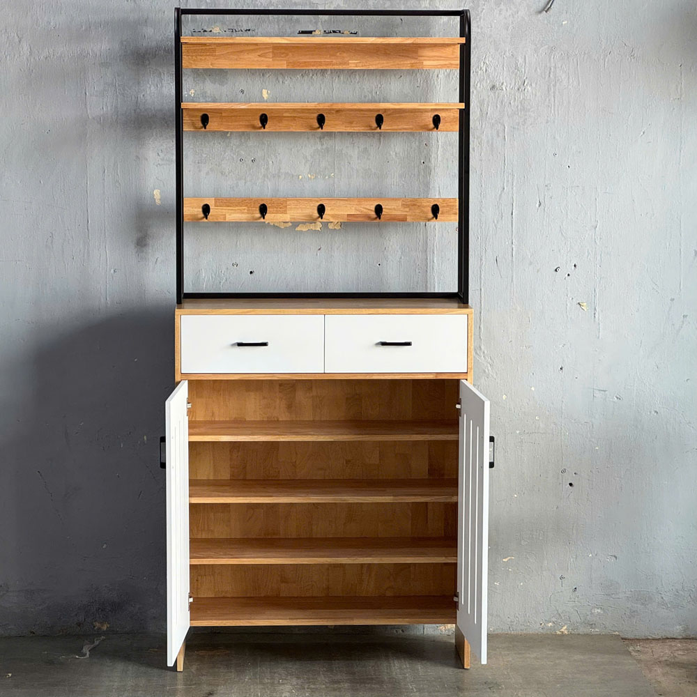 Kệ tủ để giày dép 100x35x224cm gỗ cao su khung sắt KG68114