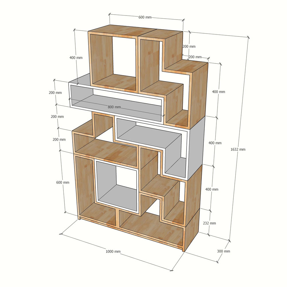 Kệ xếp hình cho bé 100x35x163cm gỗ cao su TREM018