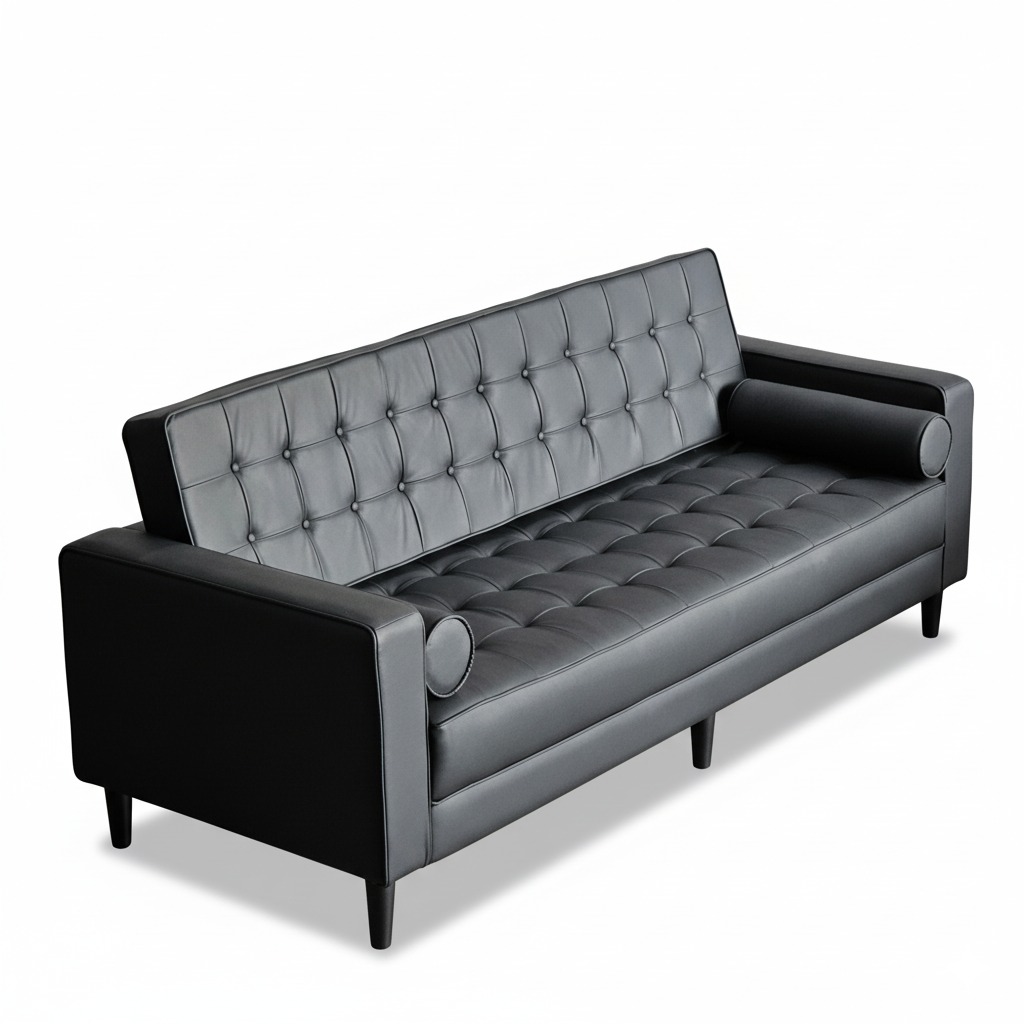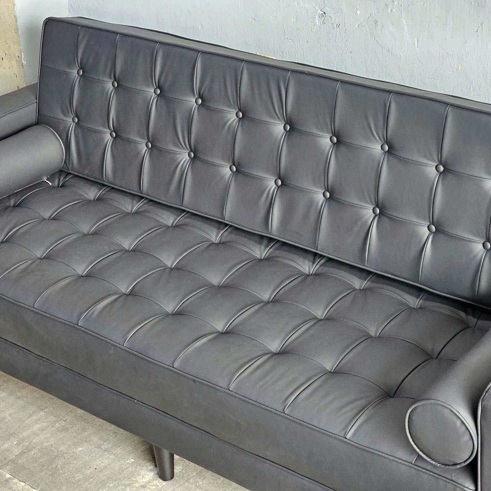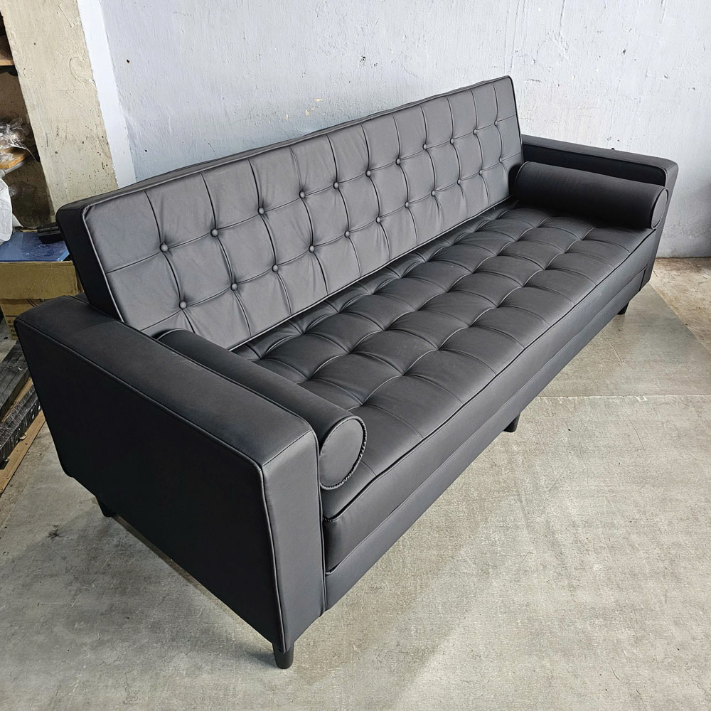 Sofa băng nệm bọc simili cao cấp kết hợp khung chân gỗ tự nhiên