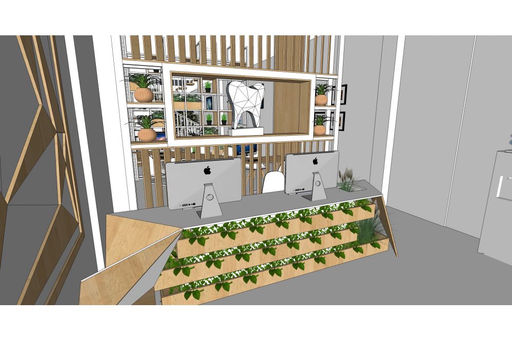 Sau khi tiến hành khảo sát và đo hiện trạng, team Home Office lên phương án thiết kế và vẽ 3d nội thất cho phòng nha. Dự án nội thất lần này khá khó khăn, với các yêu cầu ban đầu của chủ đầu tư là tạo nên một không gian nội thất chuyên nghiệp, nhưng không được quá cứng nhắc mà phải tạo được sự thân thiện, gần gũi với khách hàng khi đến đây.